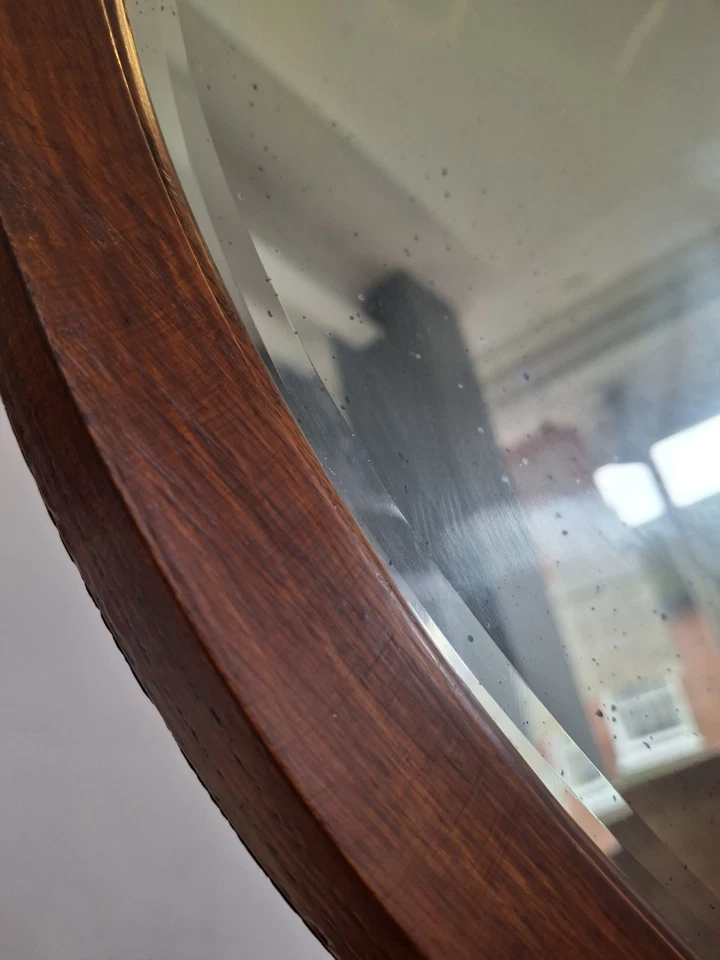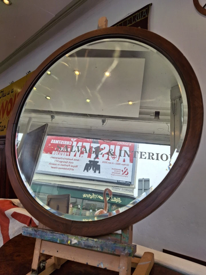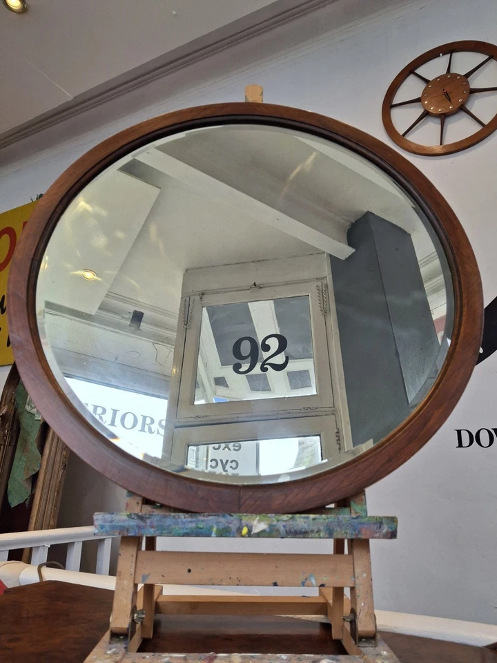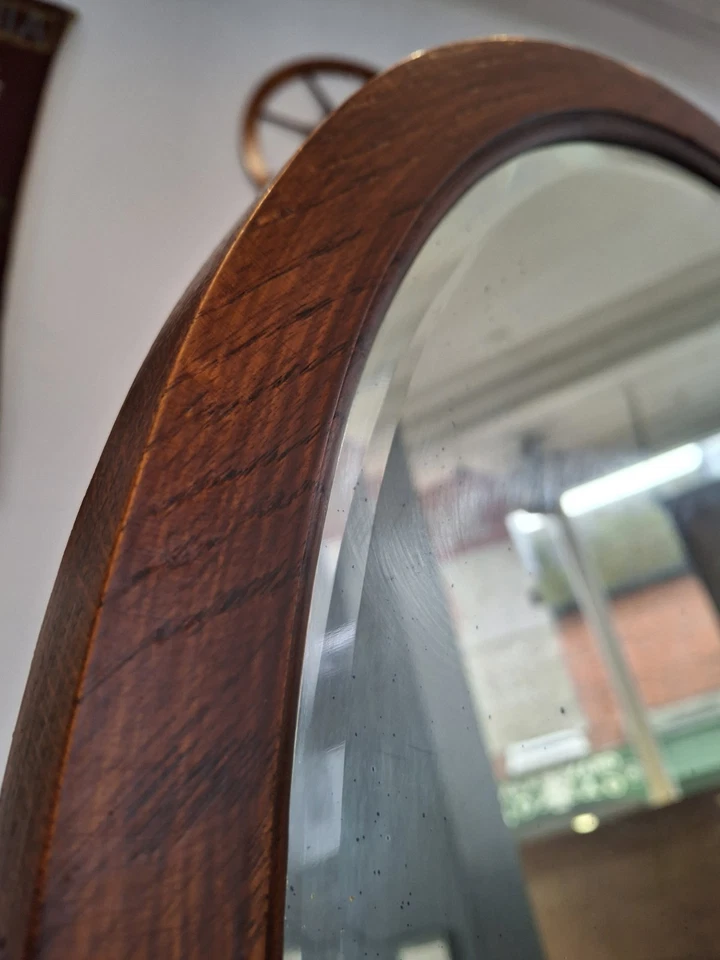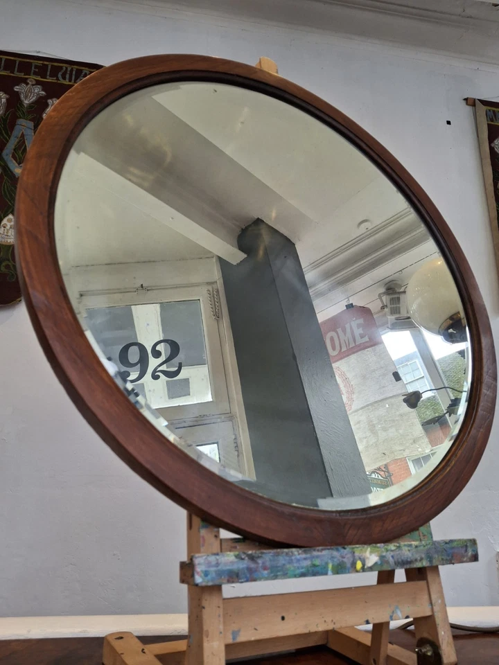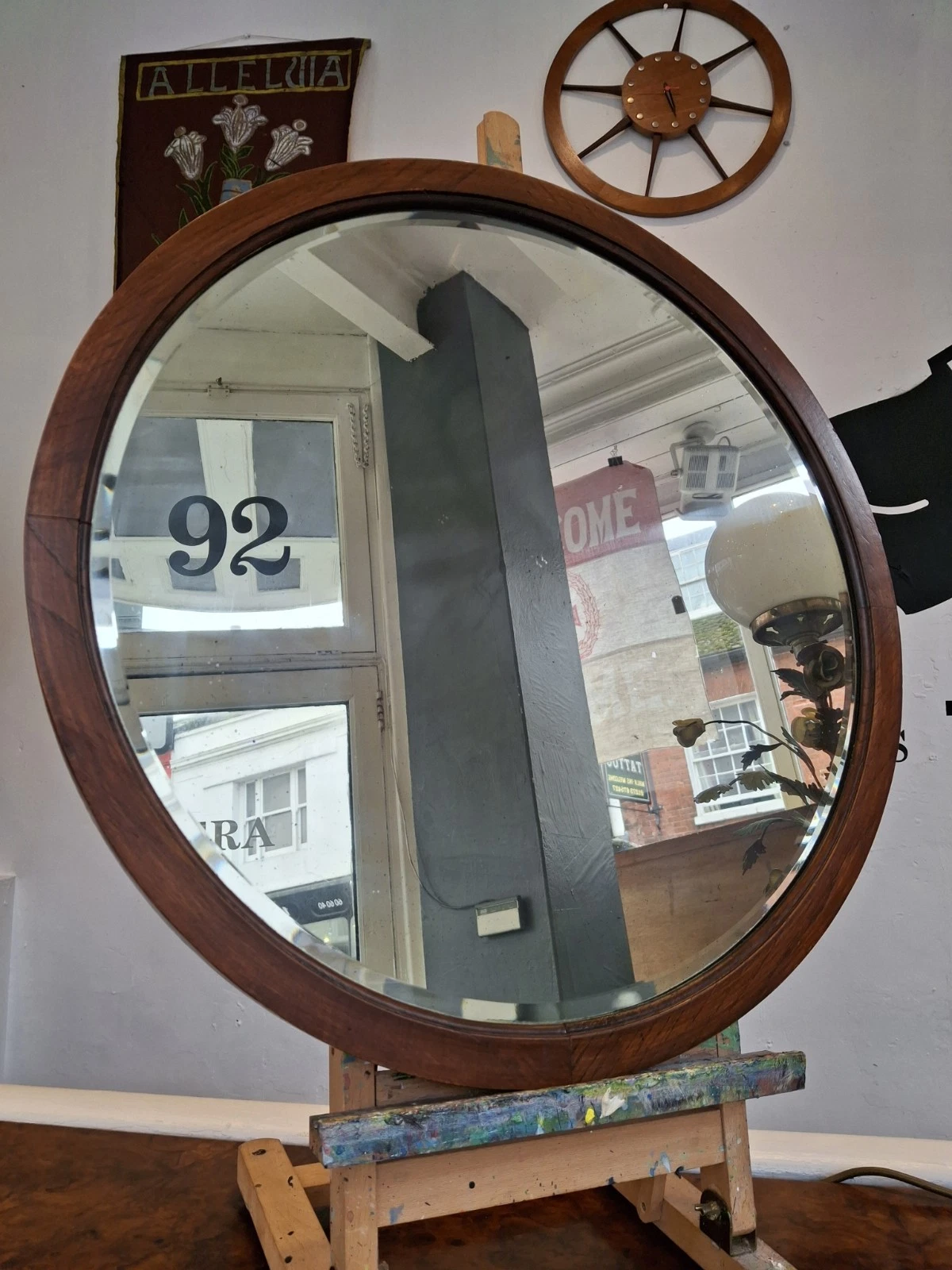 1930’s Circular Oak Framed Bevelled Edge Wall/Vanity Mirror.