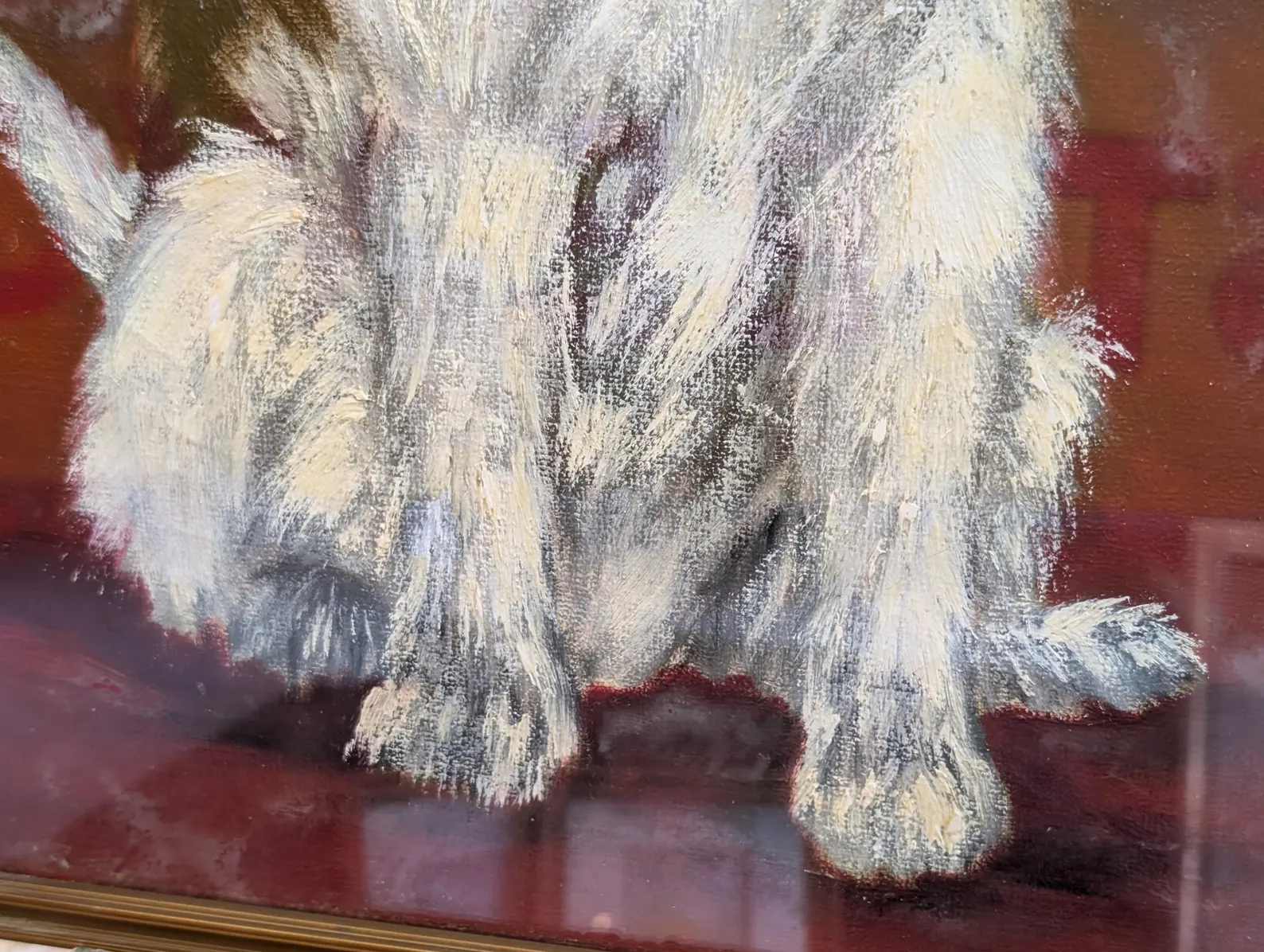 A nicely executed 1960s portrait of a beloved pet dog, this framed oil on board by Paula Gay captures the character and of the hound perfectly!