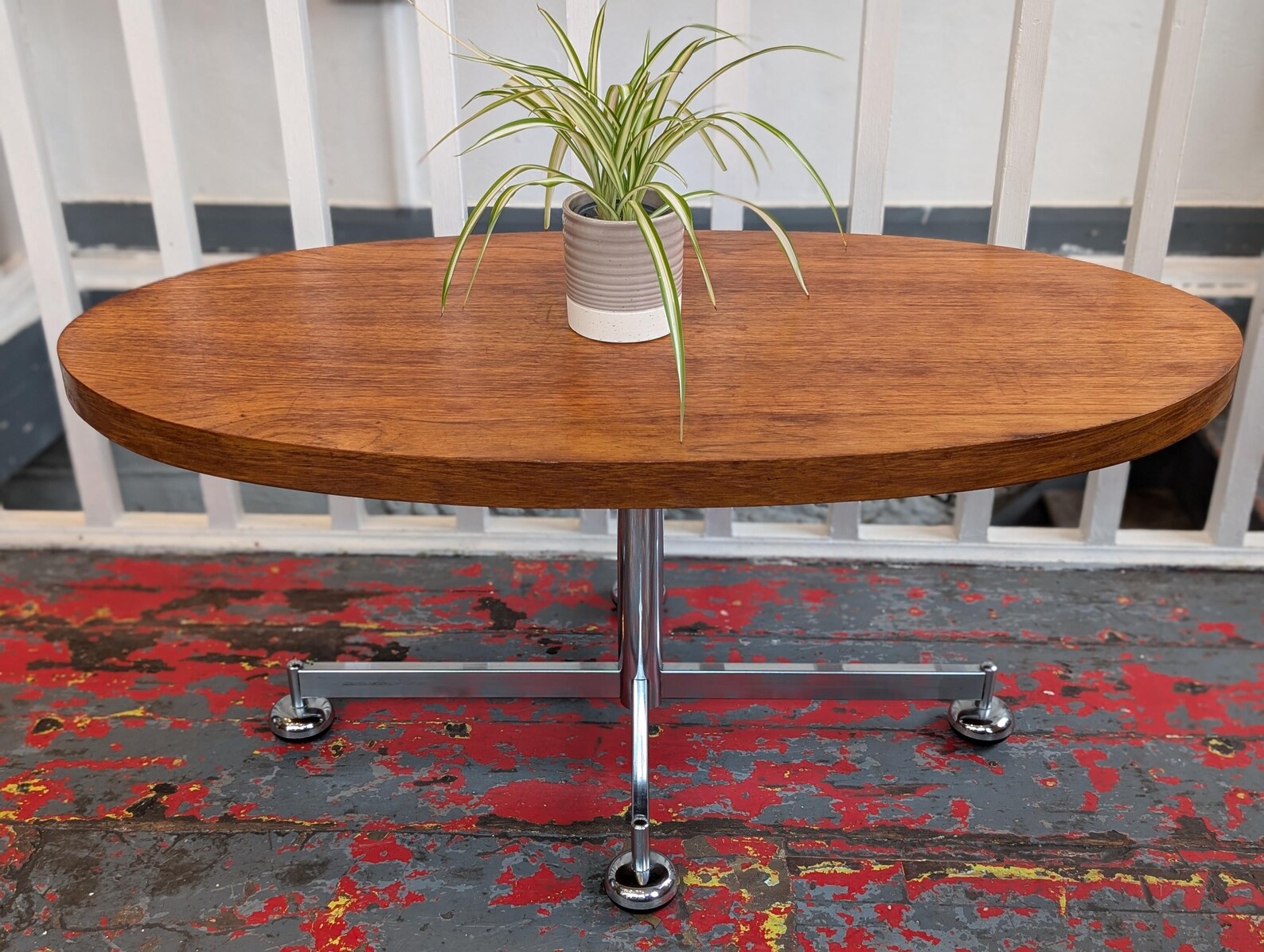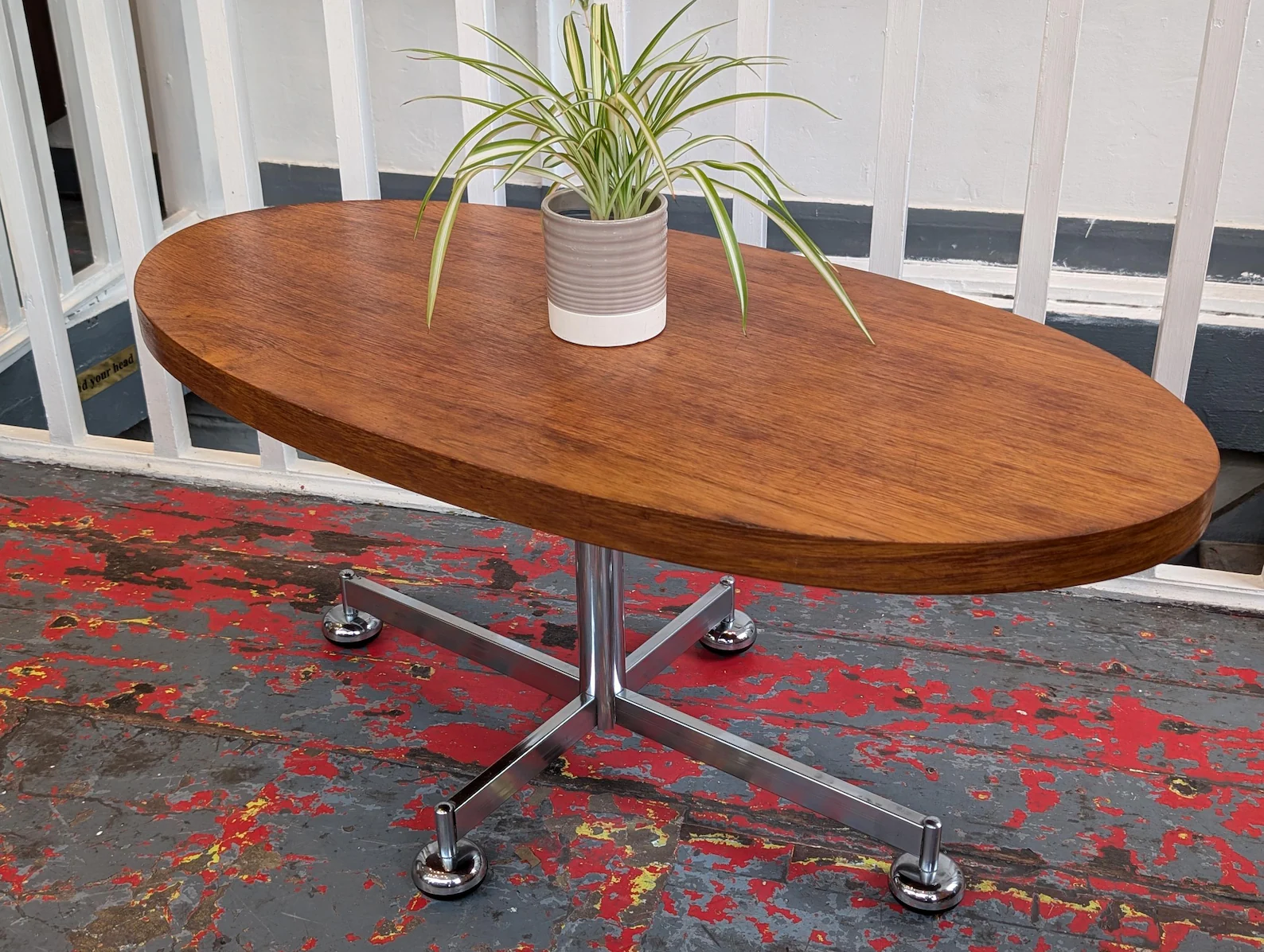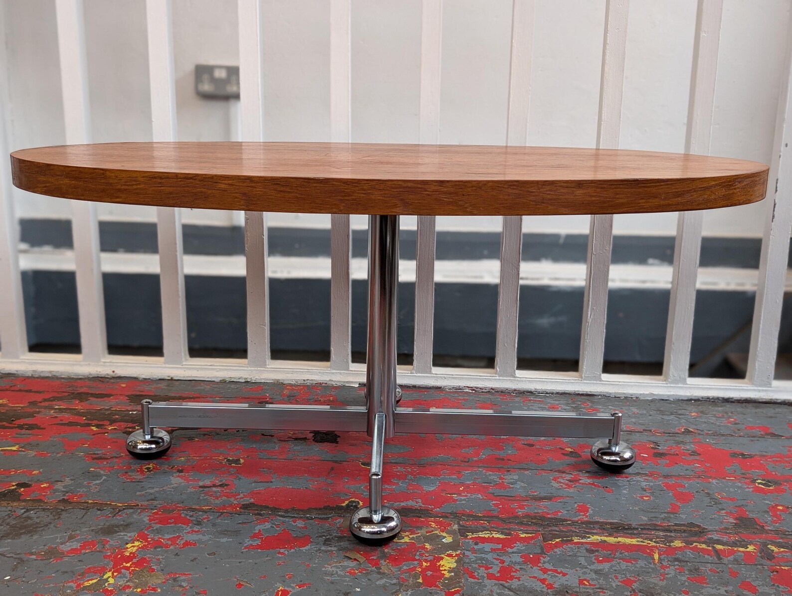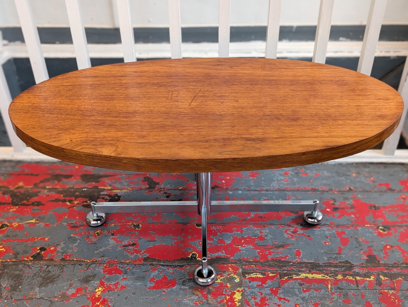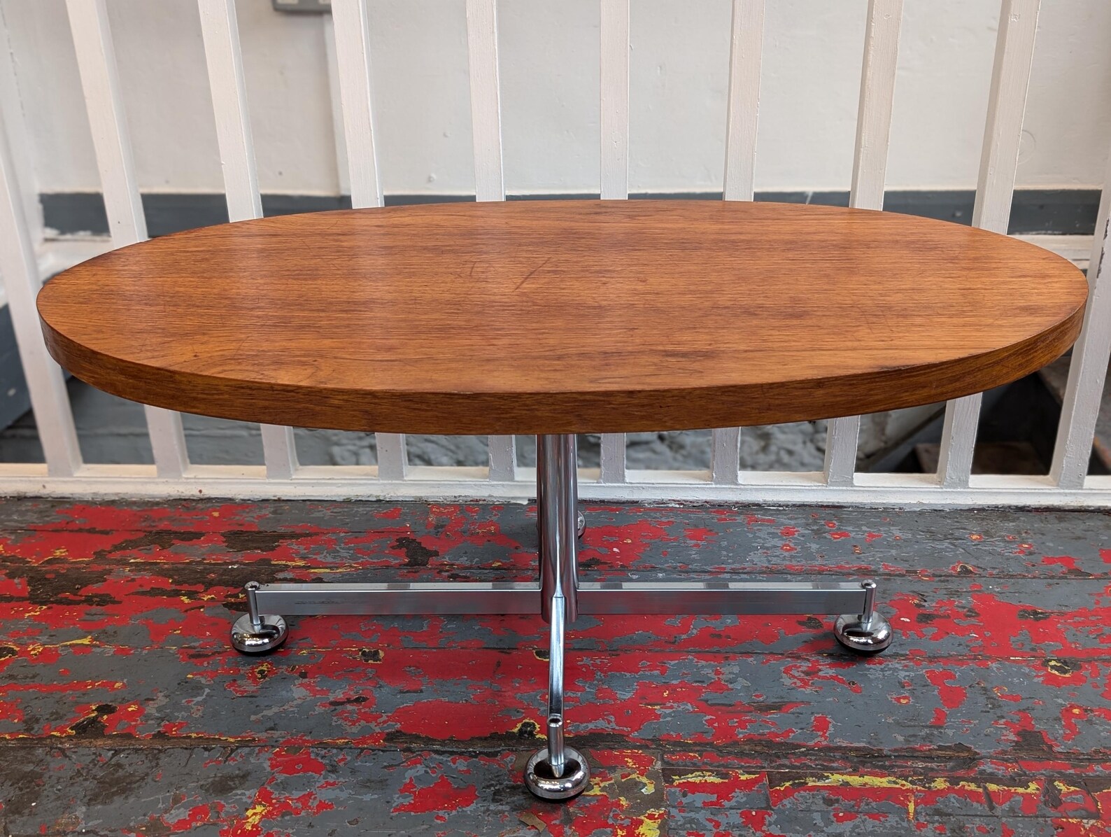 1960s MCM Danish Teak and Chrome Oval Centrepiece Coffee Table.