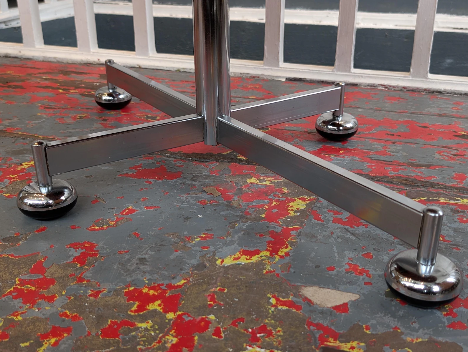 The perfect mid century modern centrepiece coffee table that will enrich any living space style, contrasting rich teak wood with a crisp chrome base, this 1960s Danish piece has extending legs to raise the surface to your desired height .