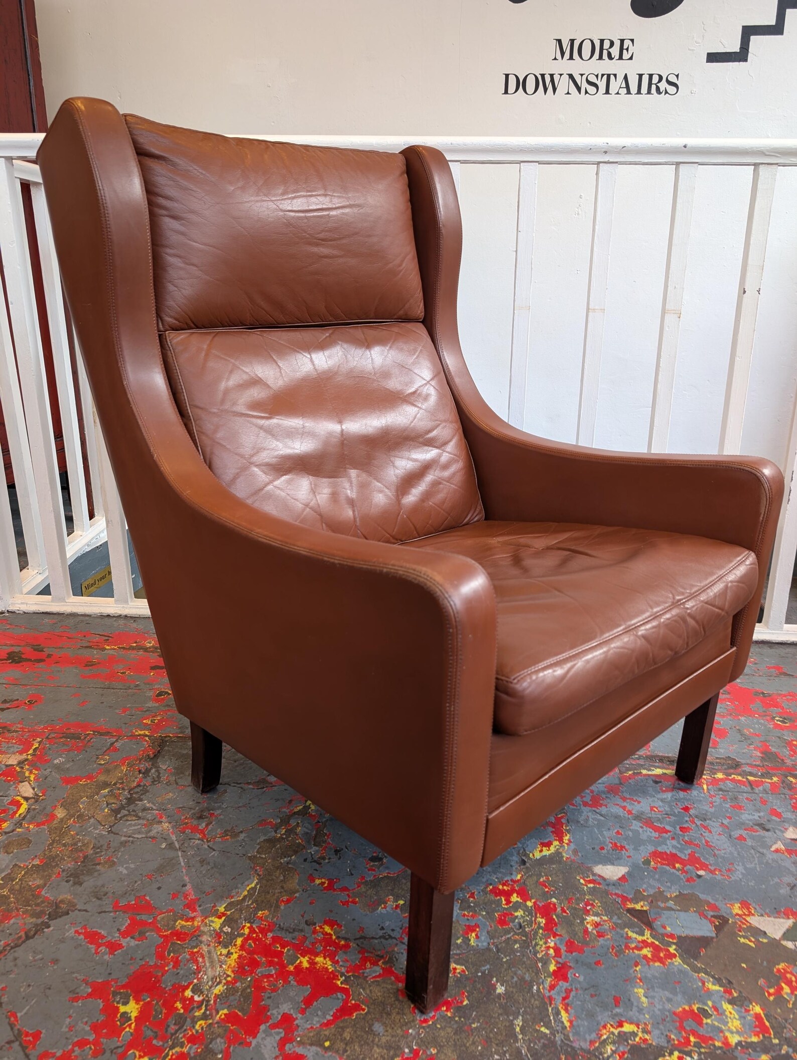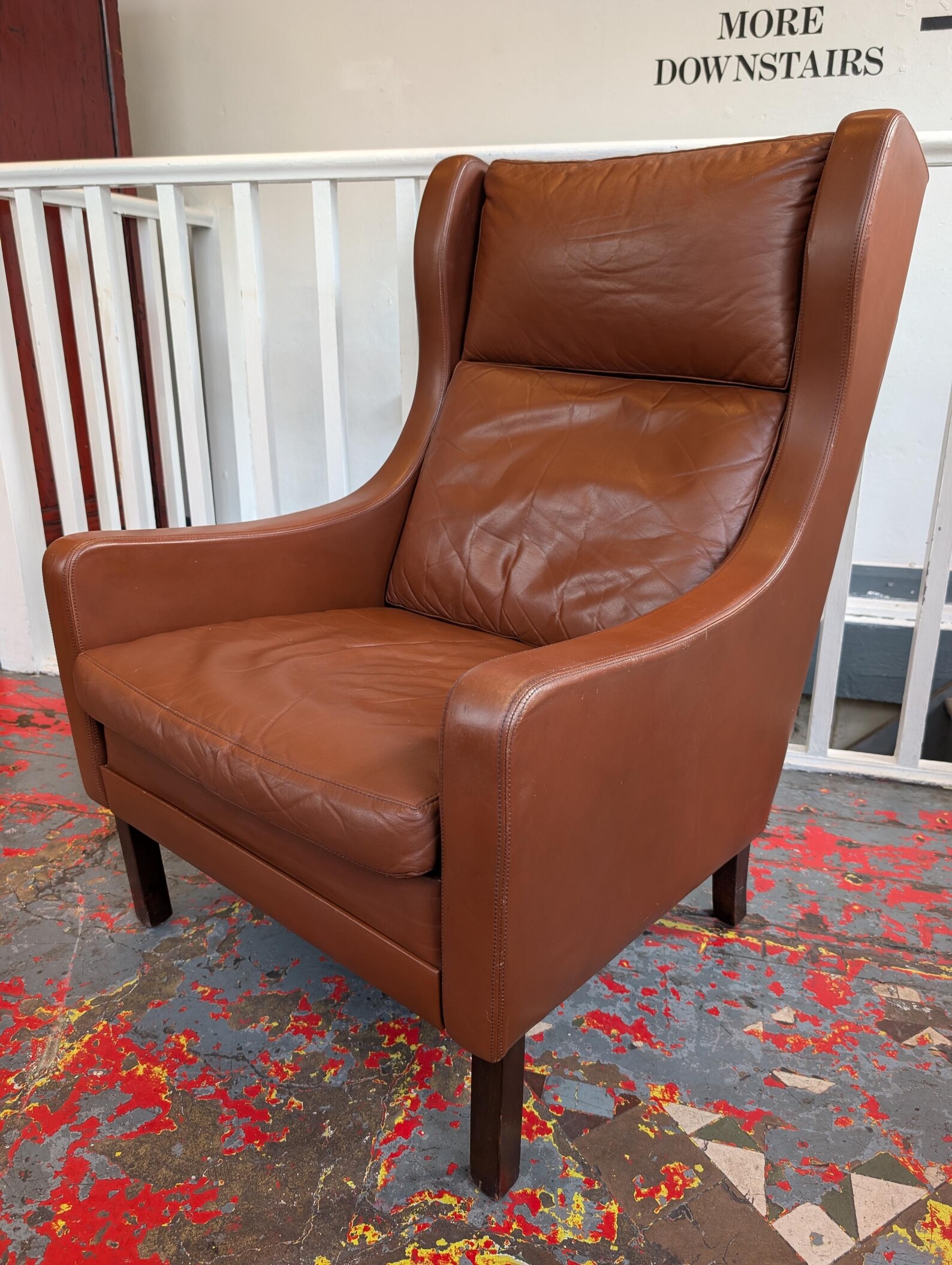 A beautifully designed and impeccably comfortable 1970s wing back leather armchair by Borge Mogensen. Offered in very good condition with some lovely yet subtle ageing to the leather finish this will make the perfect addition to any living room or conservatory space.