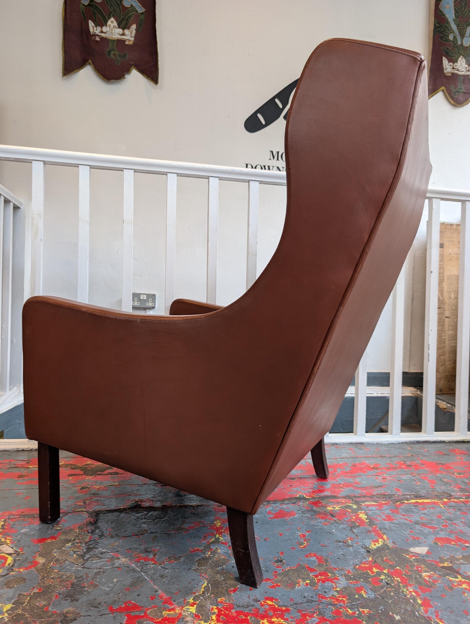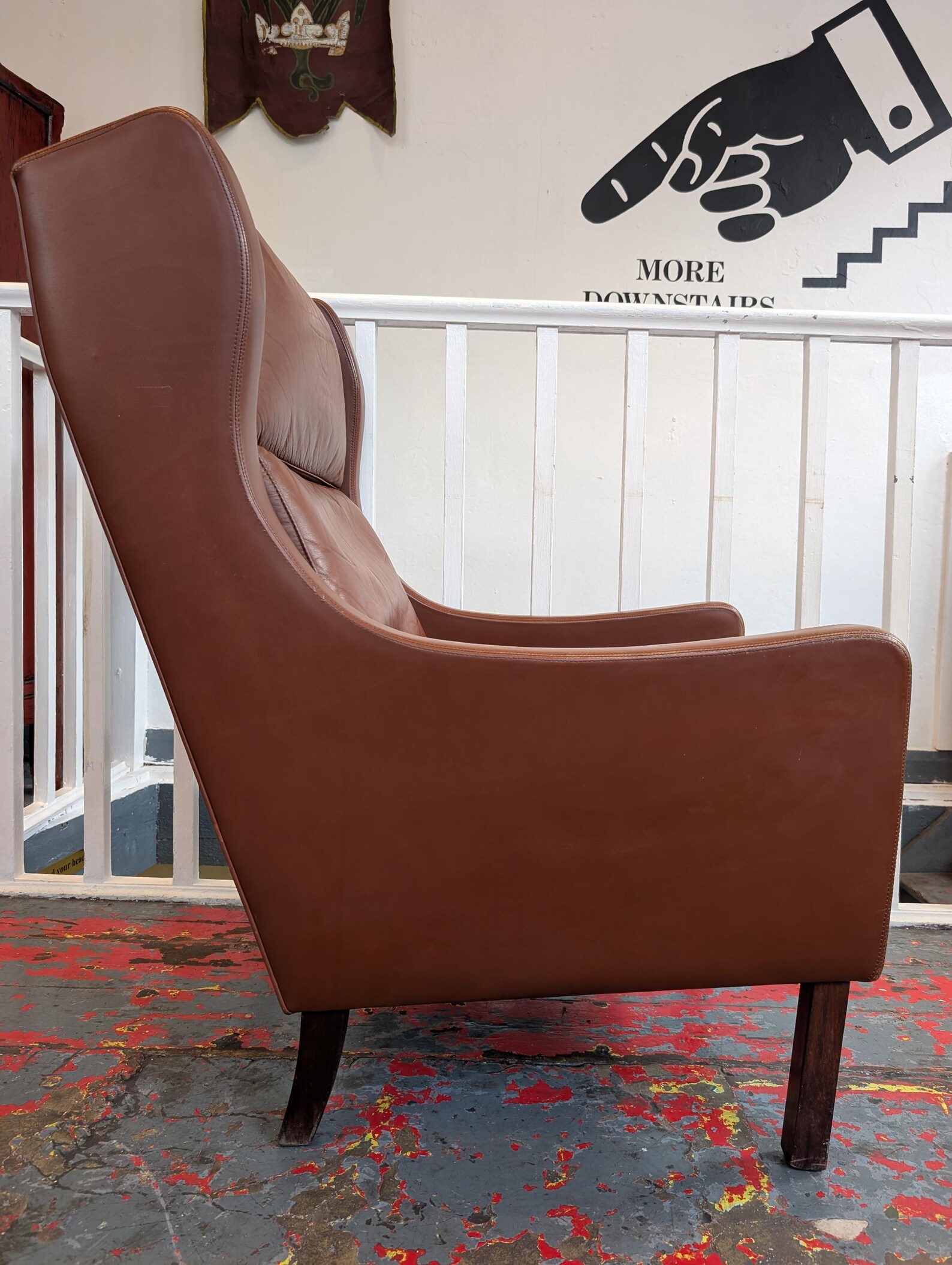 1970s Danish Borge Mogensen Wingback Leather Armchair.