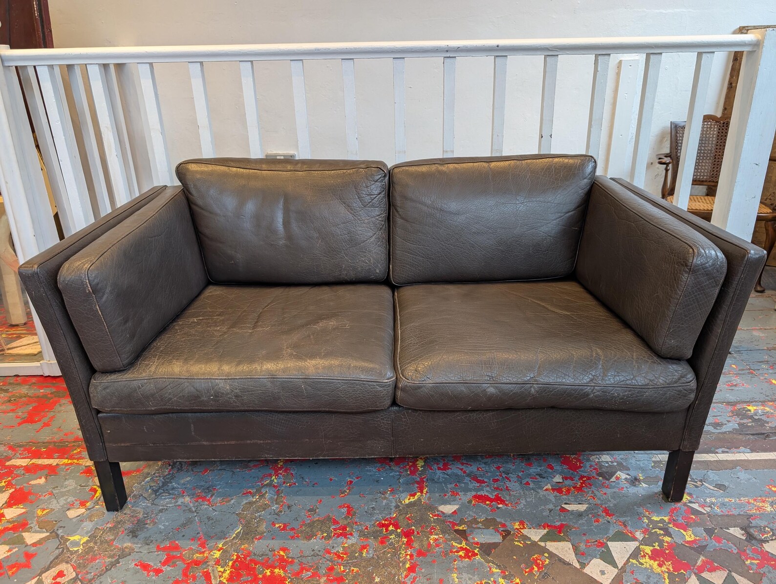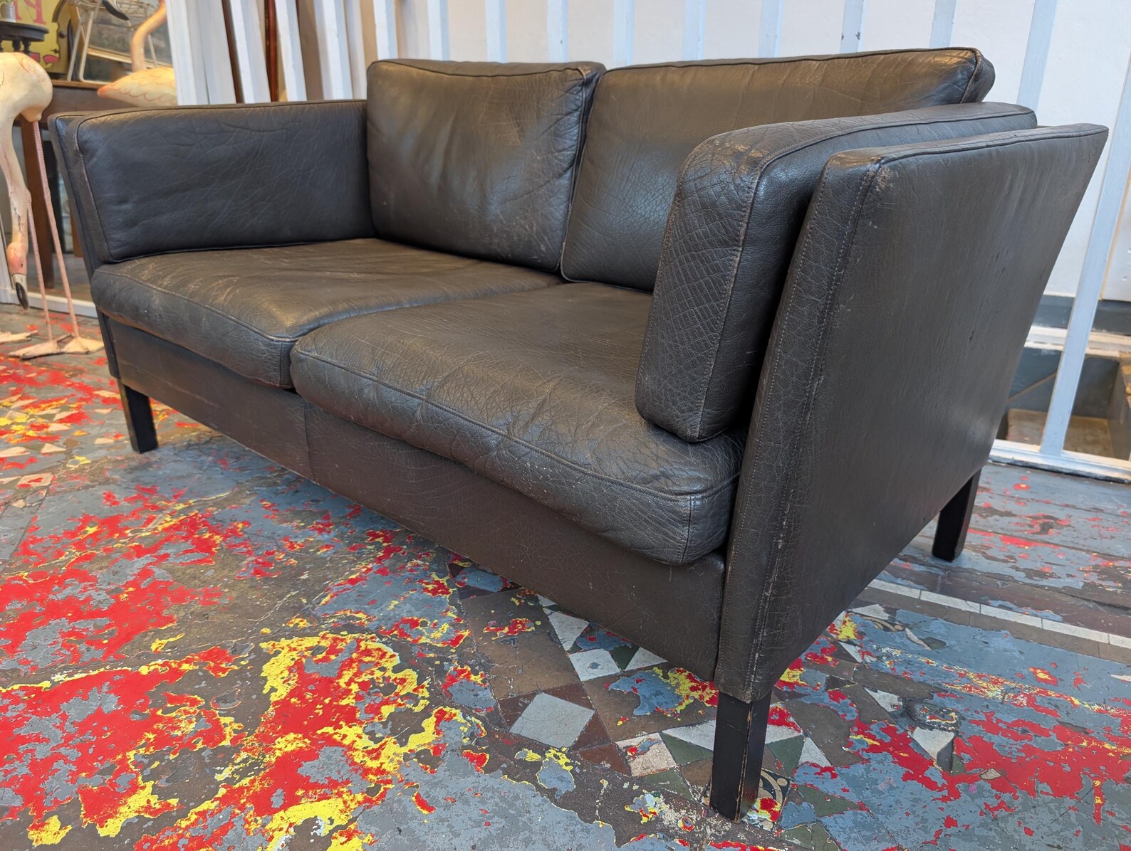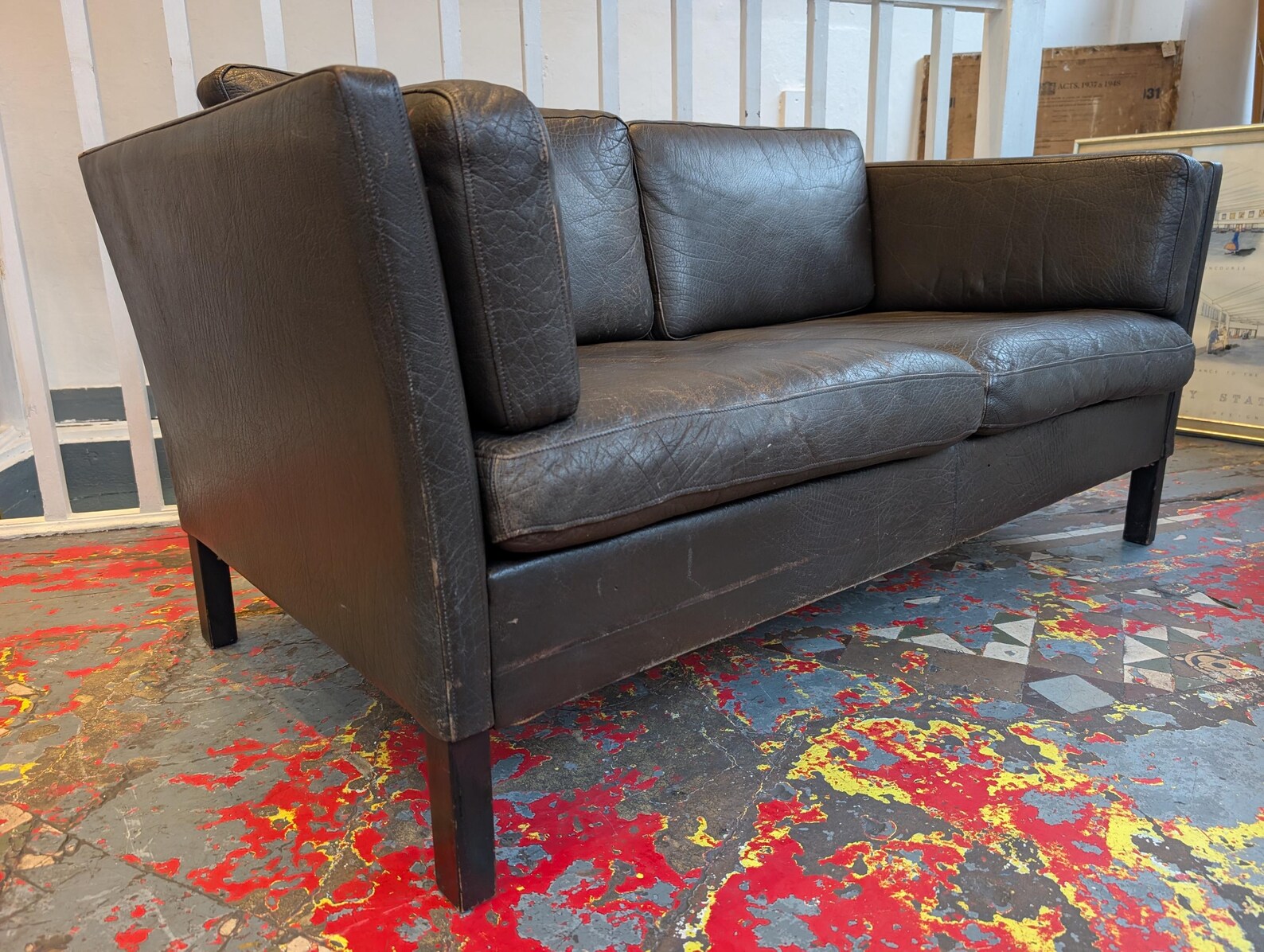 1970s Mid Century Danish Leather Two Seater Sofa.