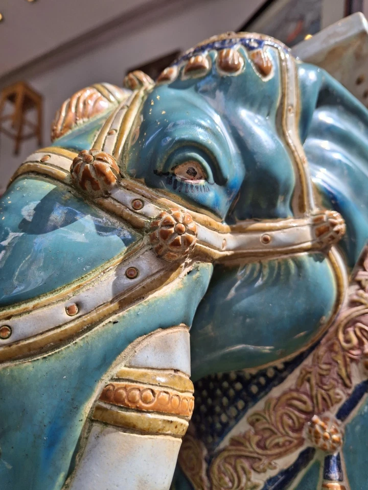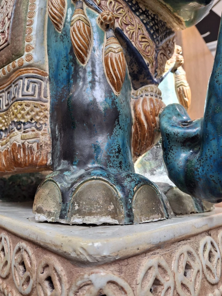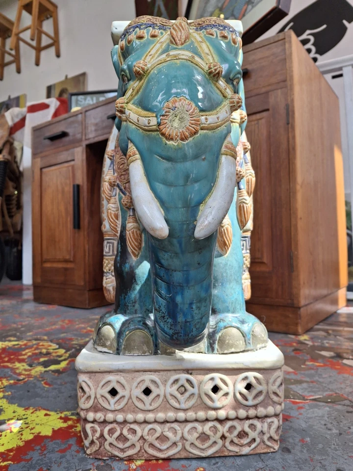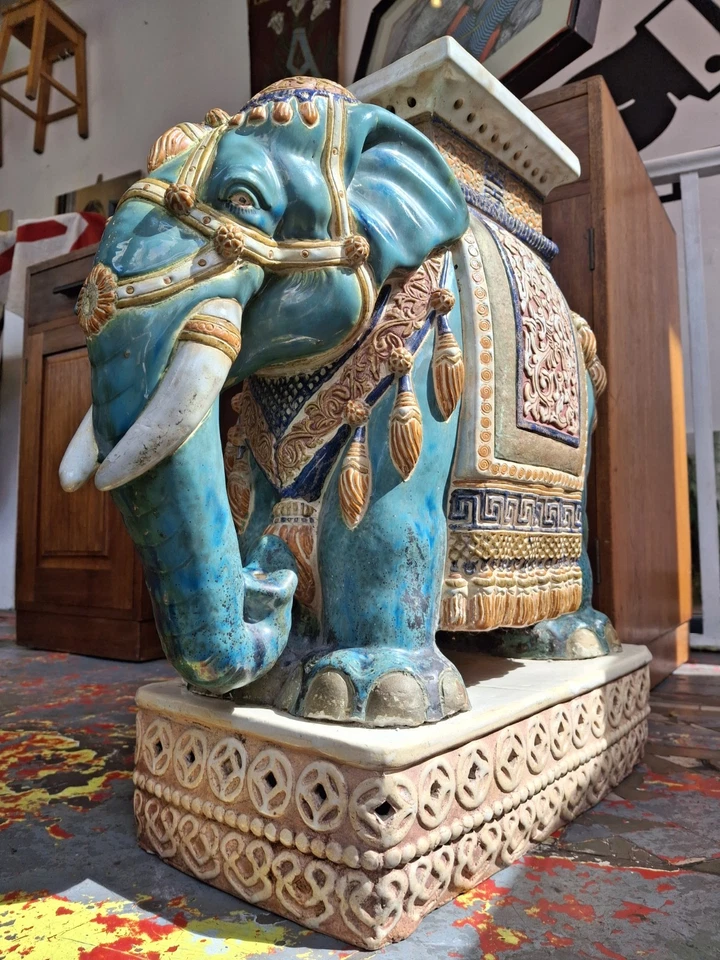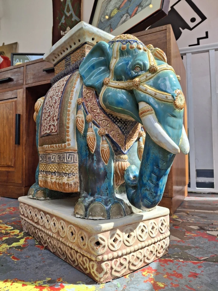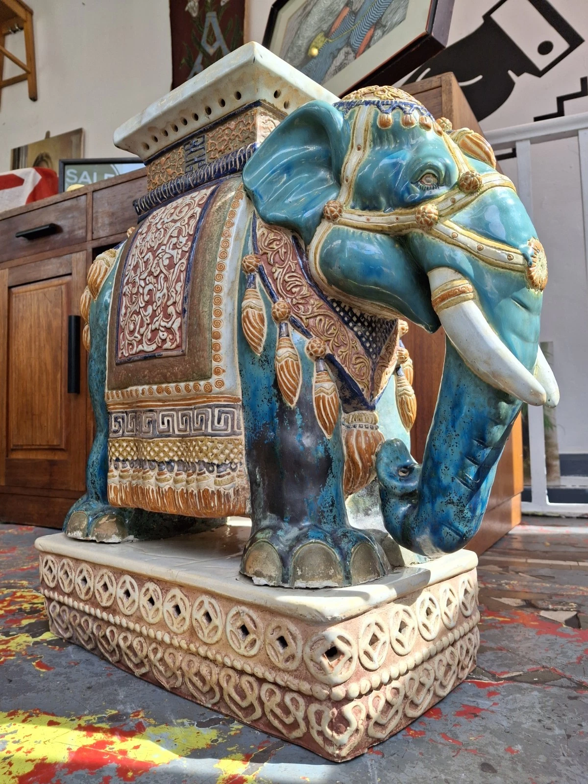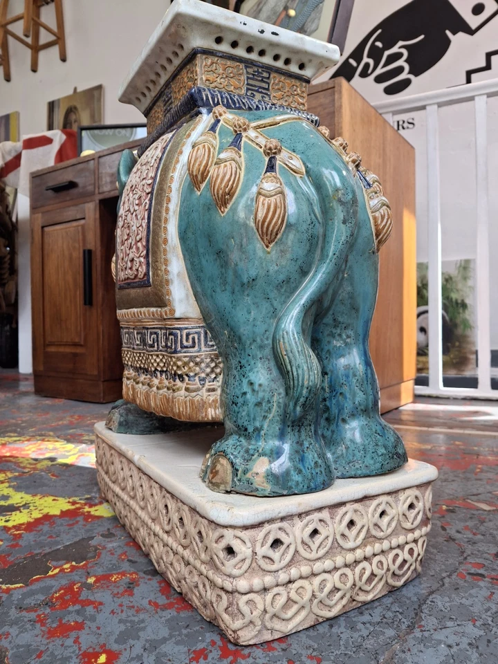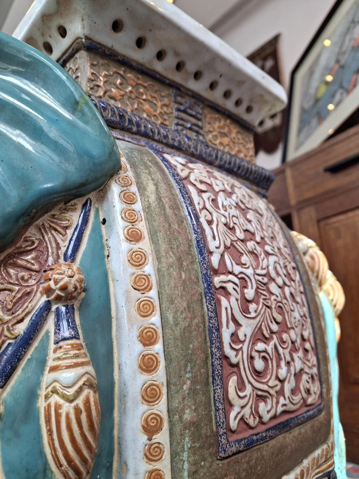 Antique Early 20th Century Chinese Elephant Glazed Ceramic Garden Seat/Table.