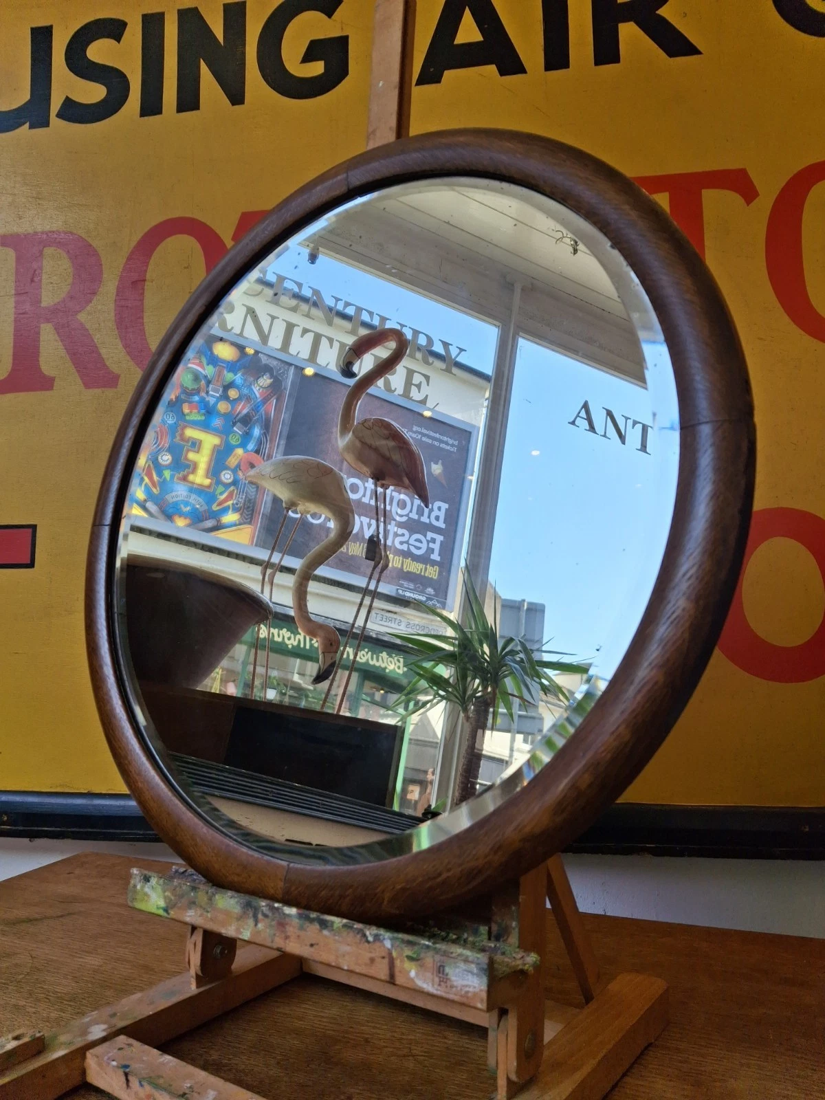 A handsome & functional piece of early 20th century interiors this gorgeous wall or vanity mirror boasts a superb heavyweight bevelled plate & high quality oak frame.
