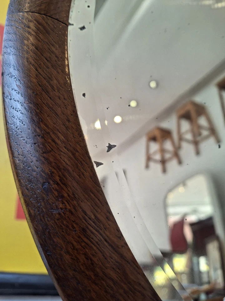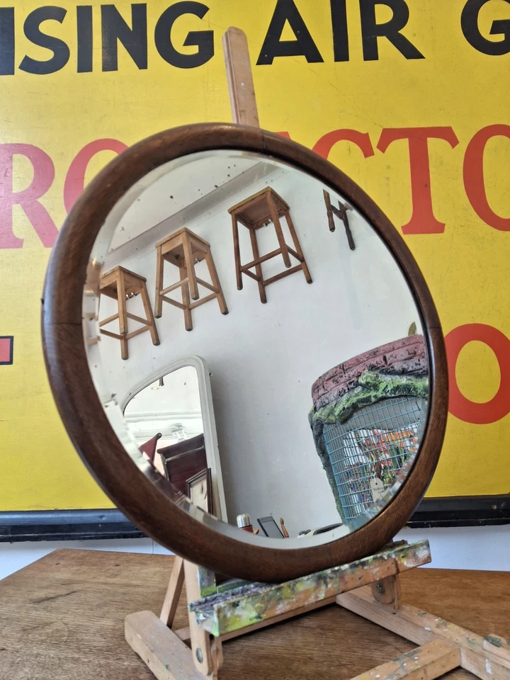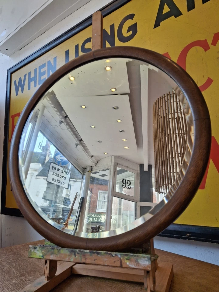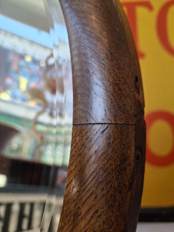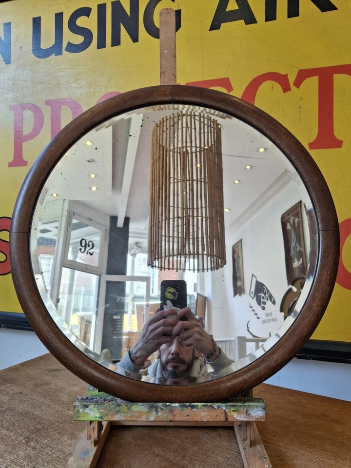 Antique/Vintage 1930’s Circular Oak Framed Bevelled Edge Wall/Vanity Mirror.