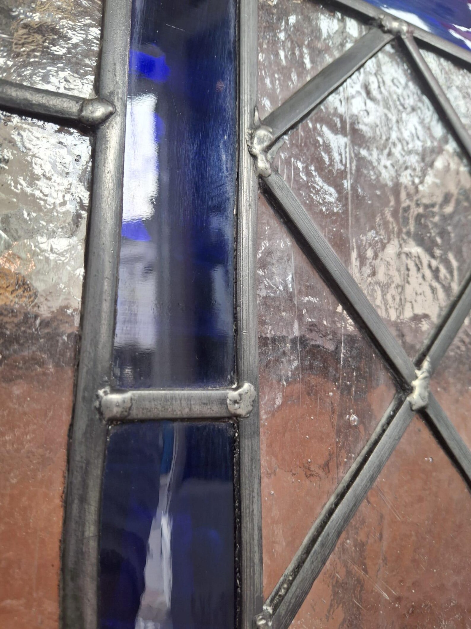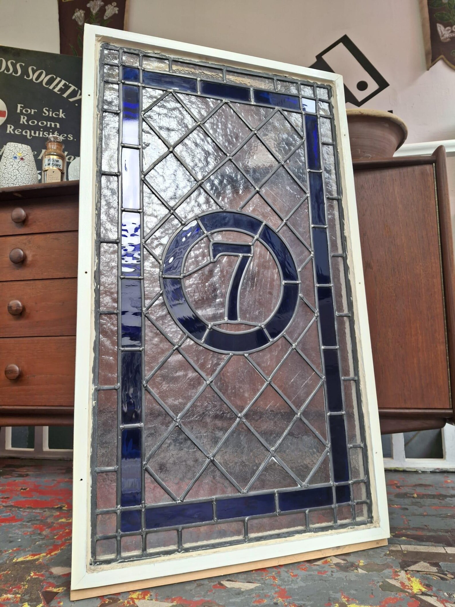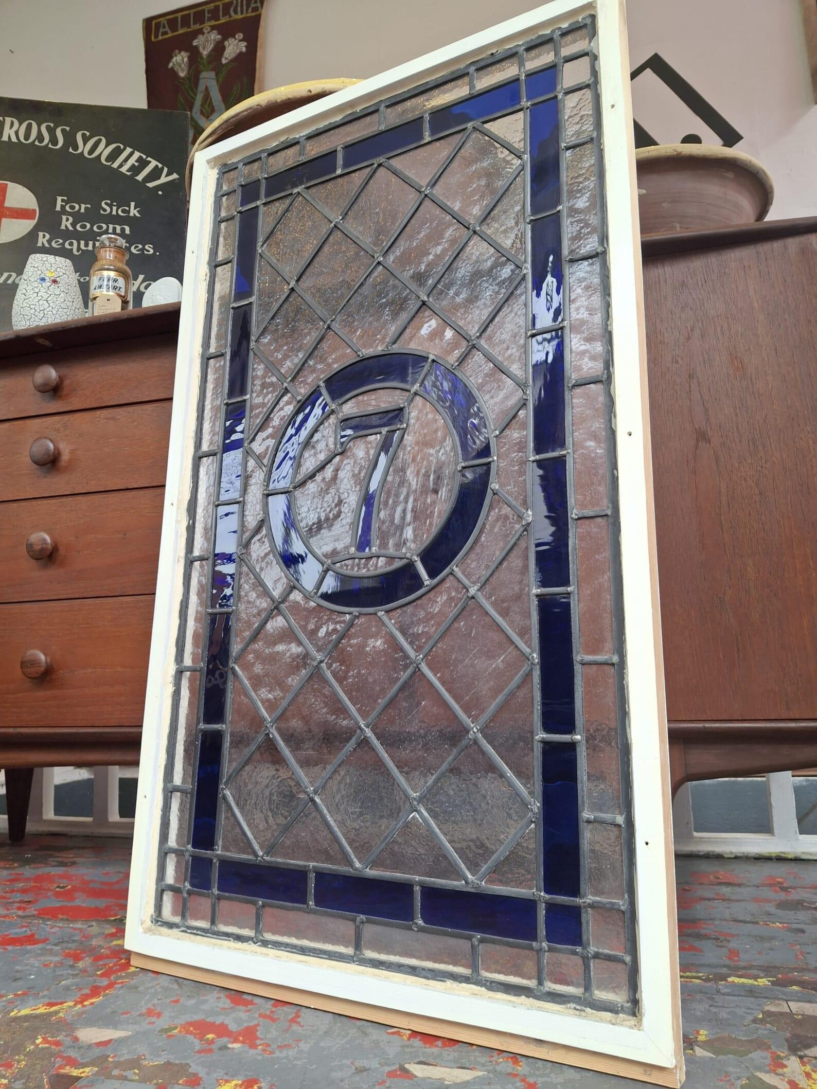 With beautiful tones to the distinct blue glasswork & all lead original and present this would be a superb architectural addition to any property or simply a piece of unique decorative artwork for any interior space.