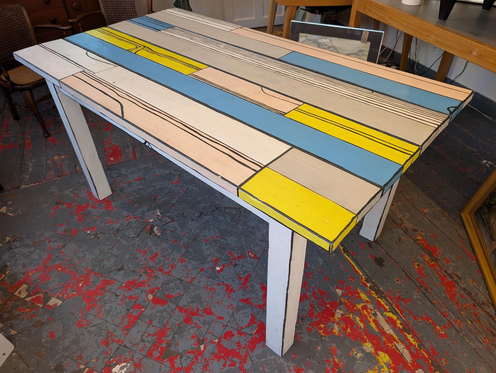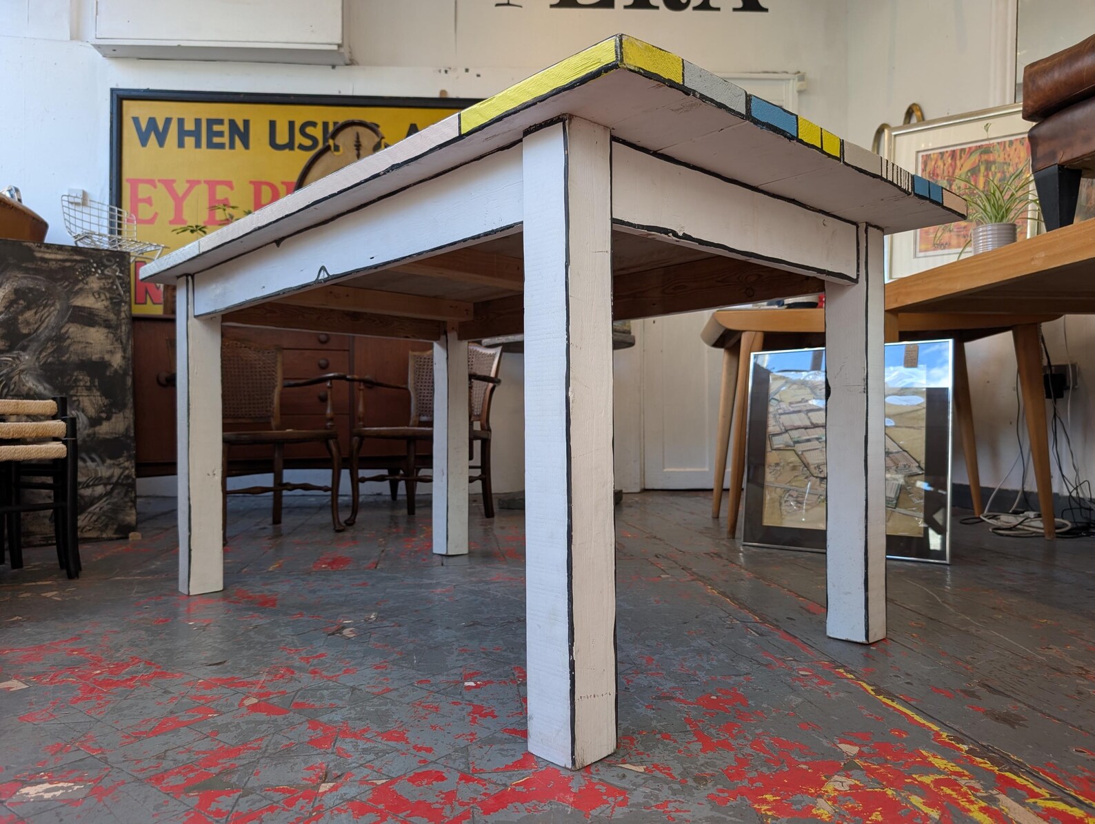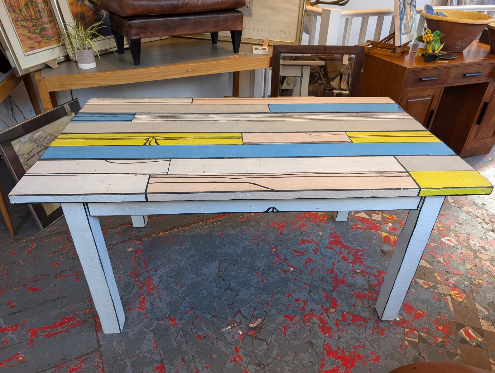 A truly unique and incredibly funky piece of South Coast vintage design, hand painted in the style of Richard Woods and Sebastian Wrong’s marvellous ‘Wrongwoods’ range for Established & Sons. Constructed from salvaged pieces of the Brighton West Pier and designed into a one off, vibrant piece that has history, character and style in abundance!