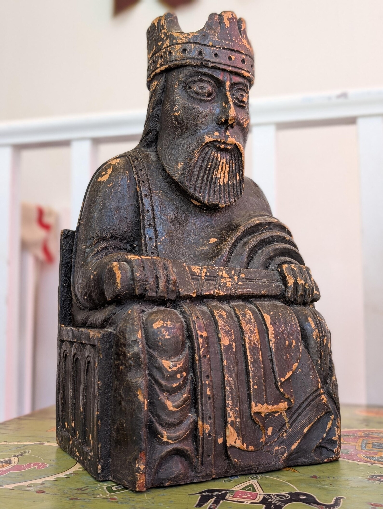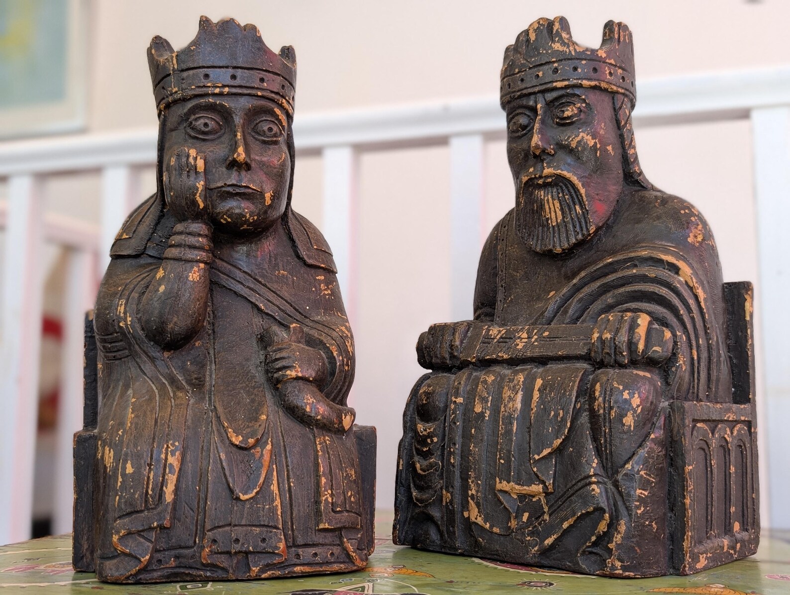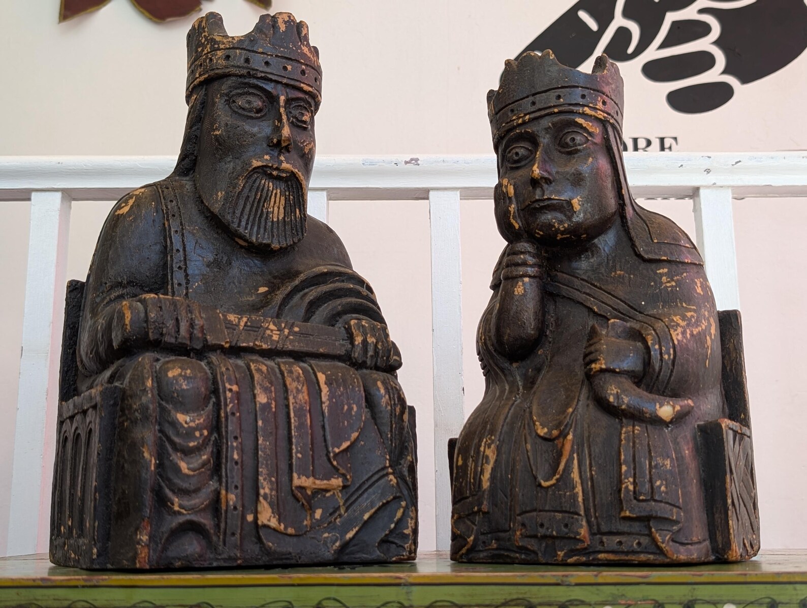 Used in the British Museum as point of sale promotional display pieces in the mid-late 20th century to advertise Isle of Lewis Chess Sets, these wonderful carved resin oversized chess pieces are fantastic decorative sculptures in their own right!