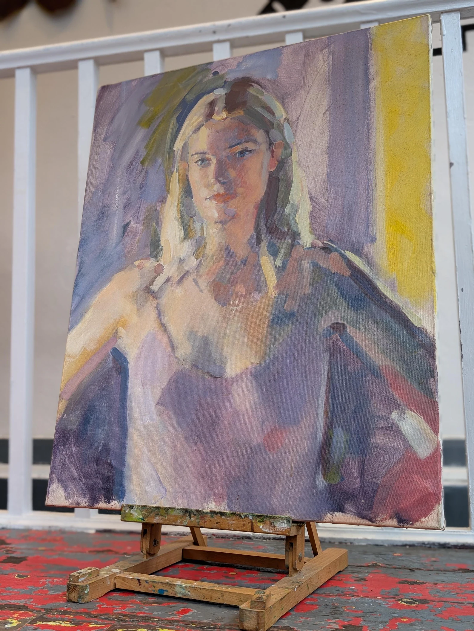Late 20th Century Oil On Canvas Impressionist Portrait of a Young Woman.