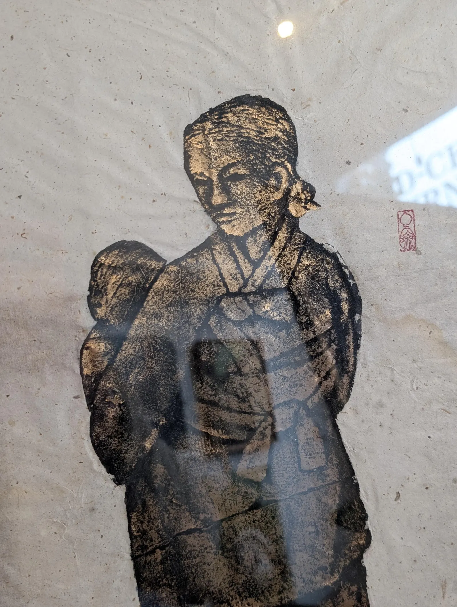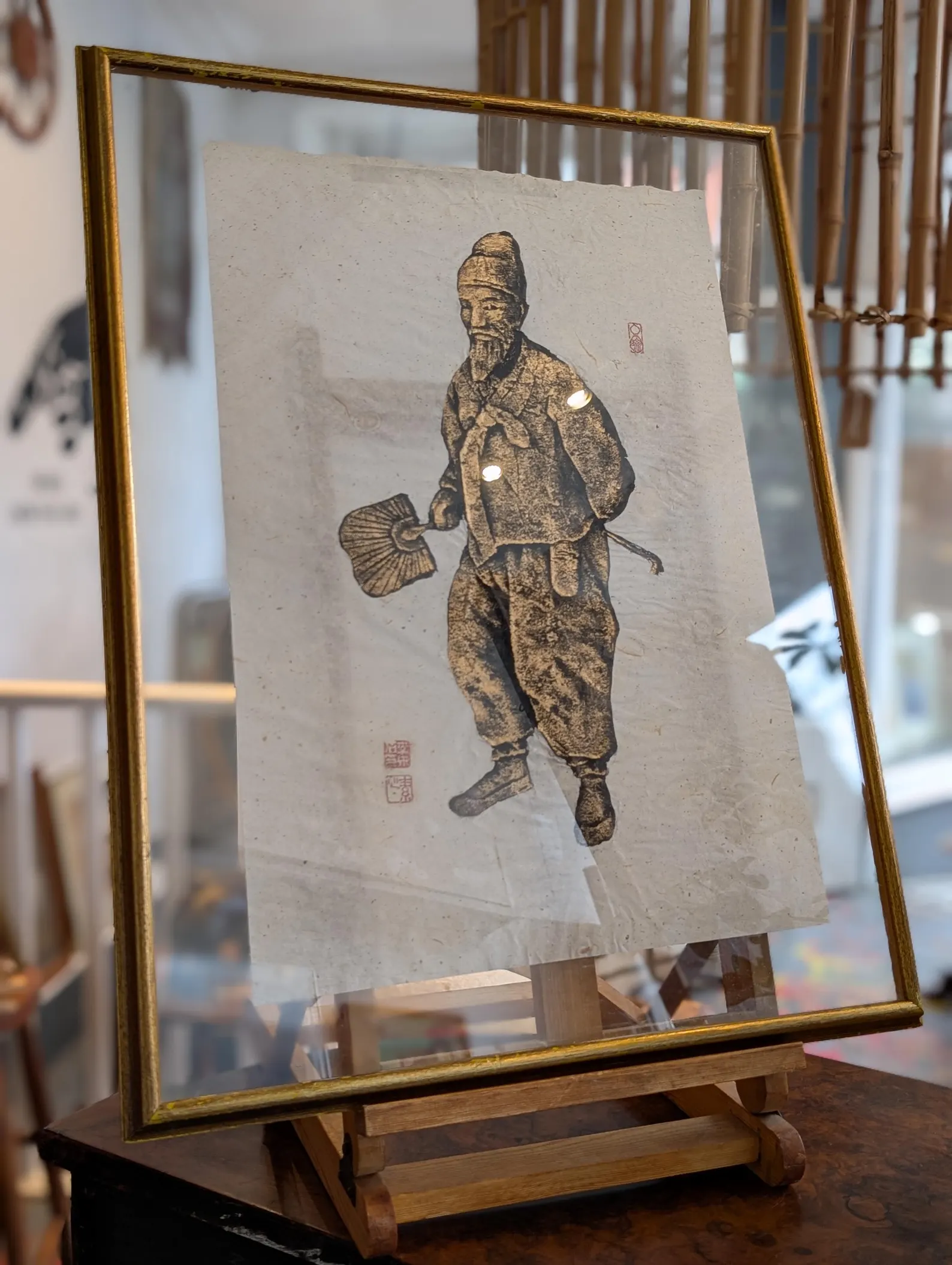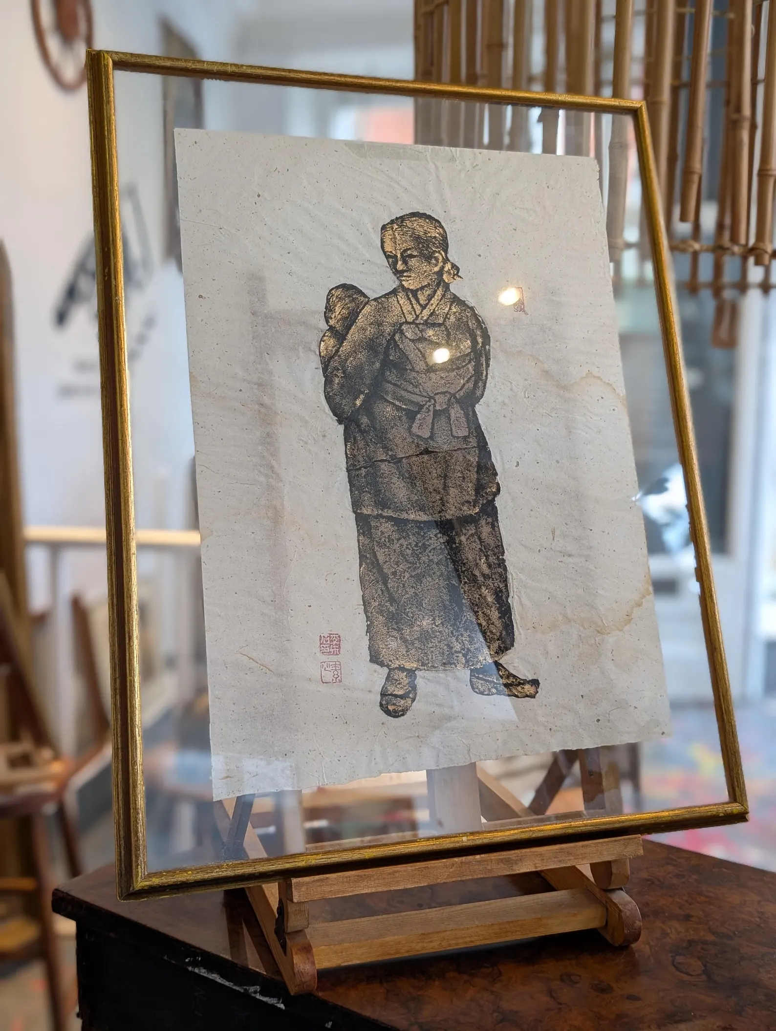 A pair of very rare artworks created by Korean artist Yi Jea Sea in the 1950s. The artworks are traditional ancestral rubbings on Hanji or Rice Paper, showcasing intricate characters and design very nicely framed in a double glassed frame. These Korean art works are a collectible, unique and visually striking addition to any collection or space.