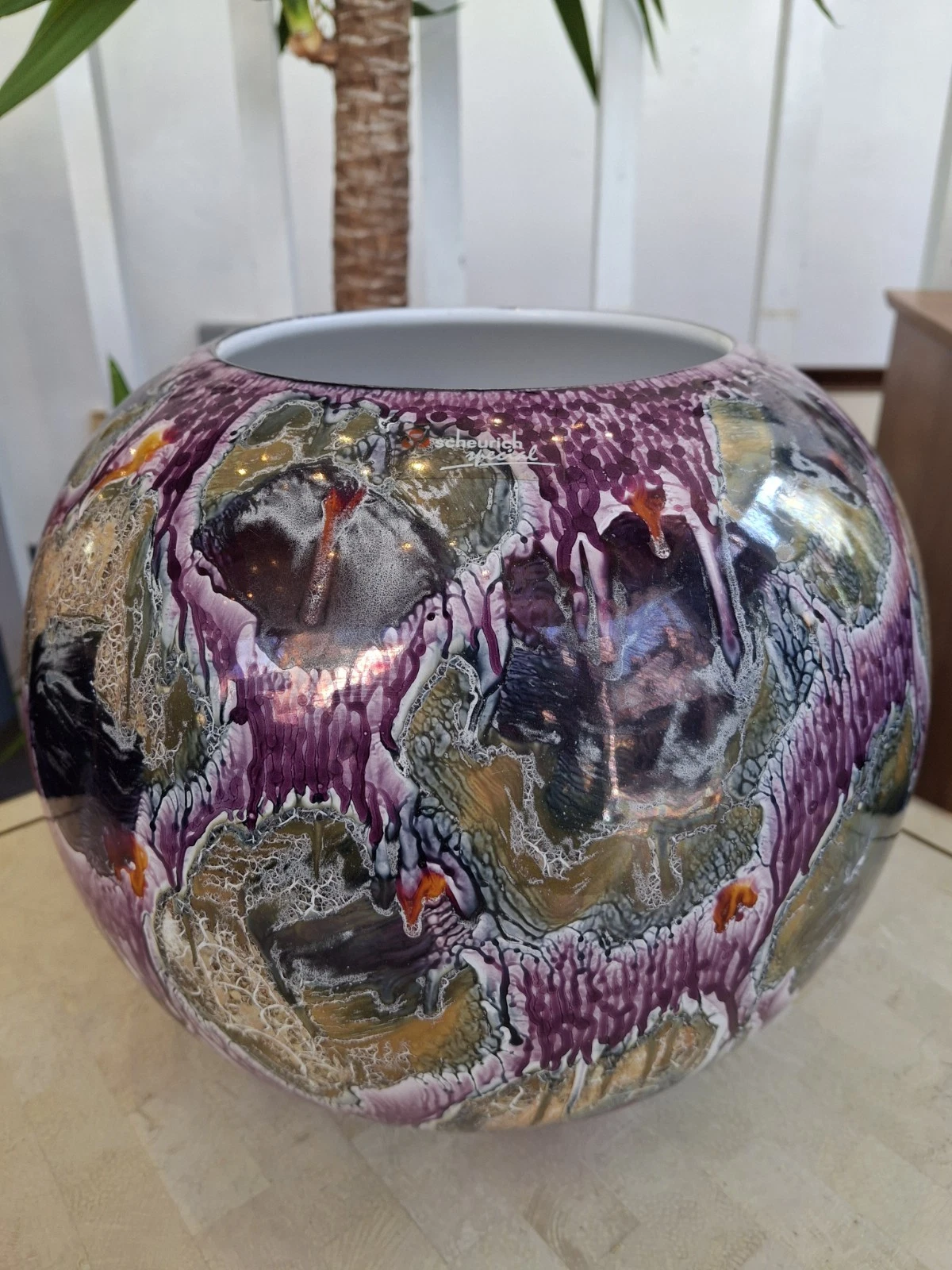 With the most stunning glaze boasting gorgeous colours & patterns across the design this rare Scheurich vase would make a superb centre piece for any dining room or coffee table.