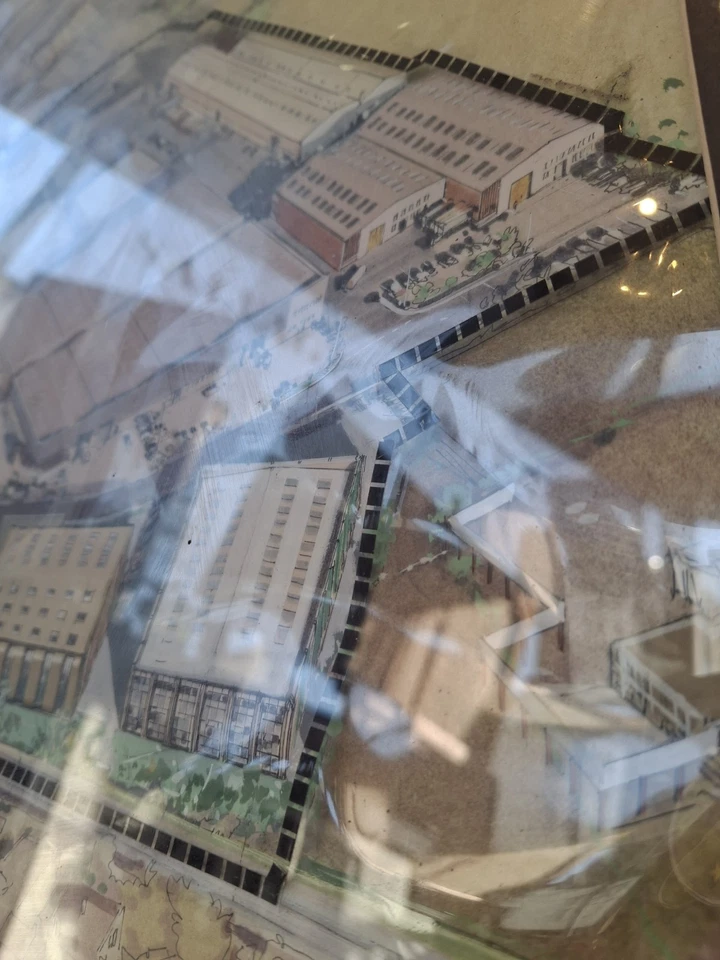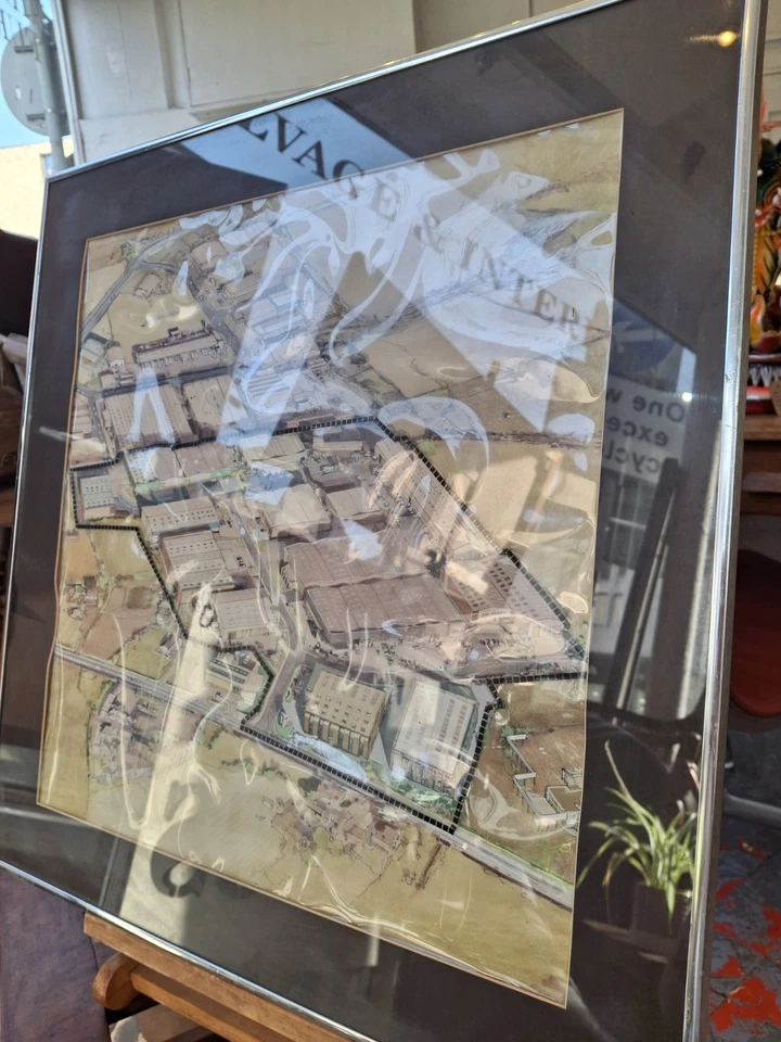 A really nicely executed architects design drawing of a school, 1960s-70s in origin & with delightful colouring and later boundary change overlay this would be a unique piece of wall art for any interior space!