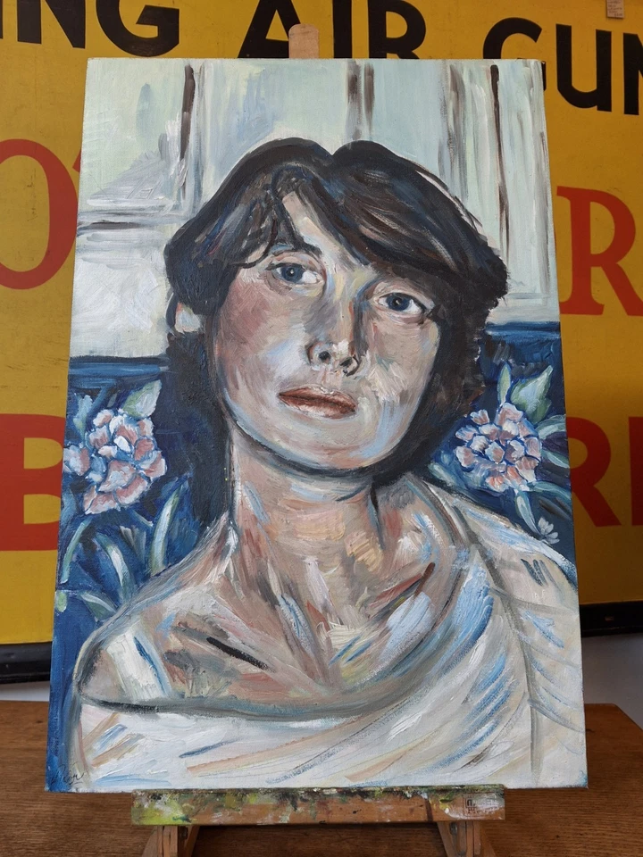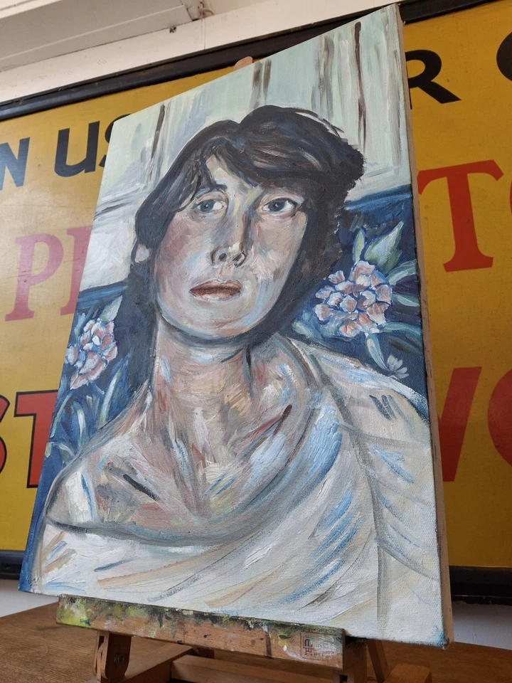Vintage Signed Oil On Canvas Expressionist Portrait Painting/Artwork.