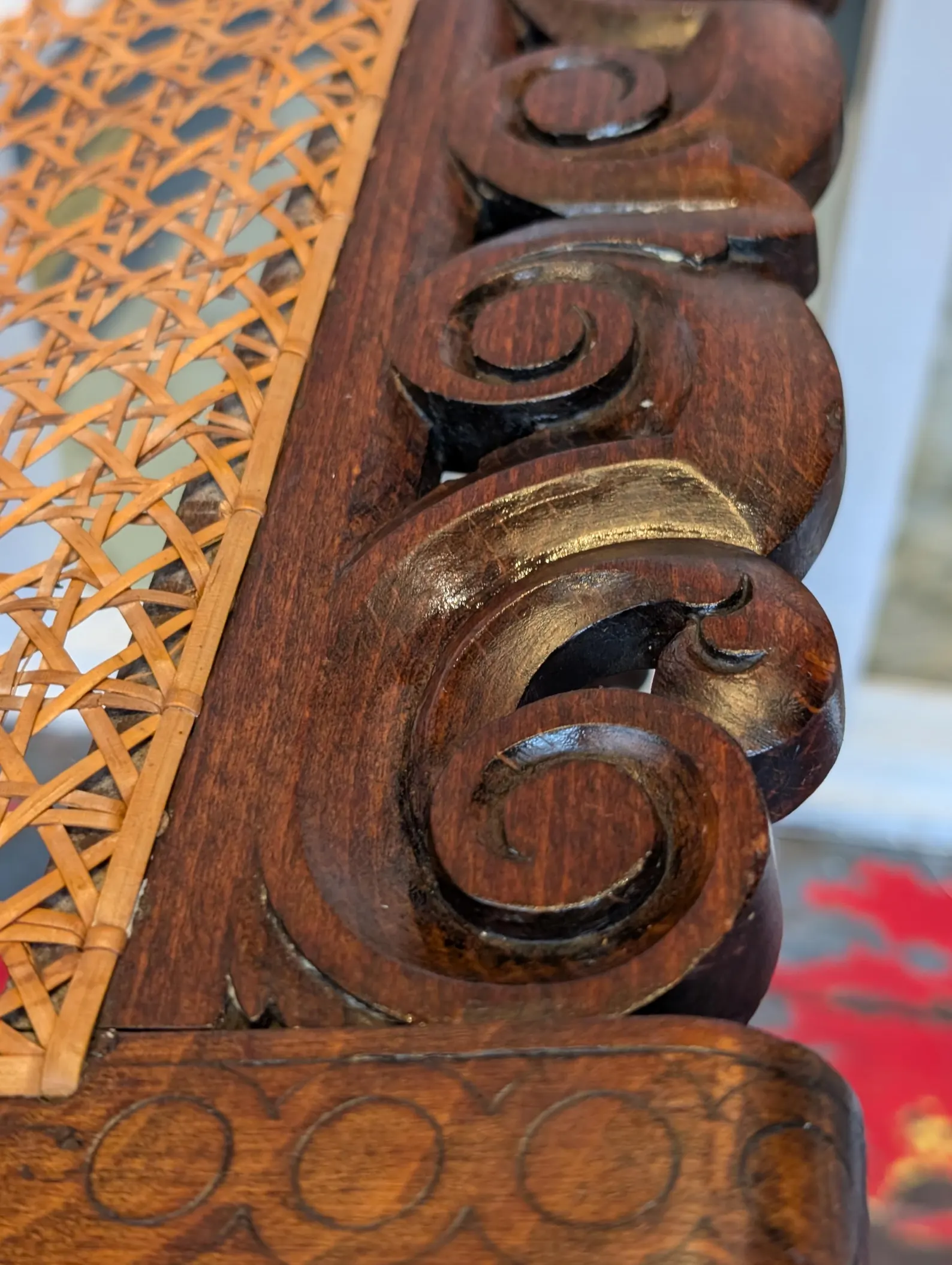 19th Century Arts & Crafts Double Hall Seat/Bench in Oak and Rattan.