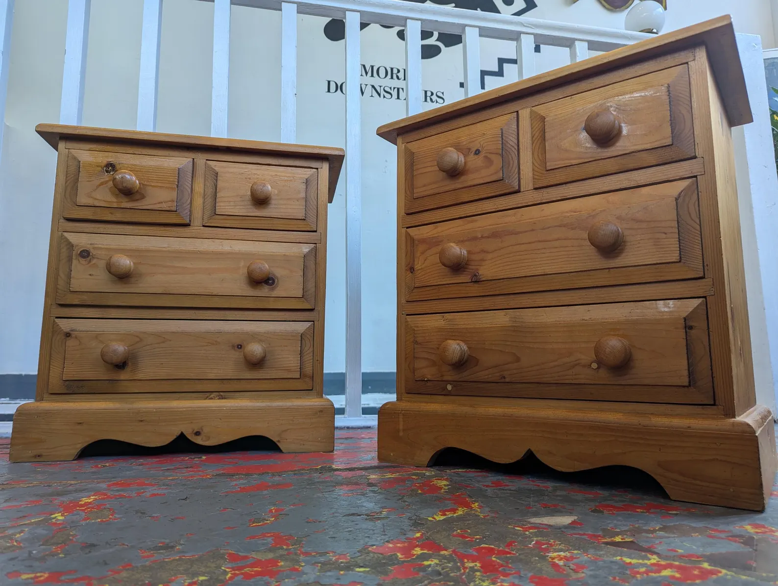 Pair of 1960s Solid Pine Bedside Tables/Drawers/Nightstands