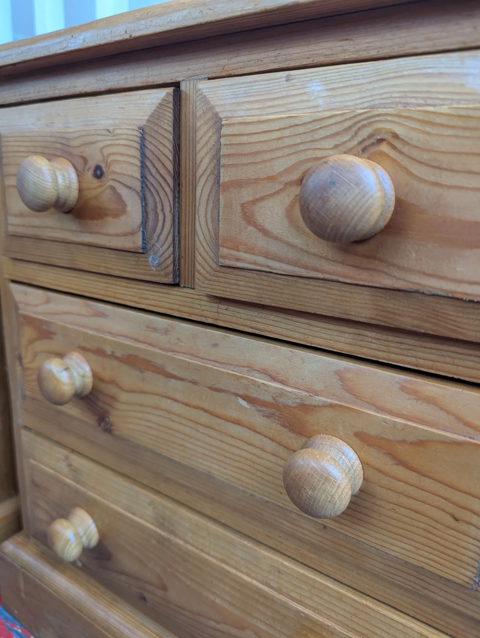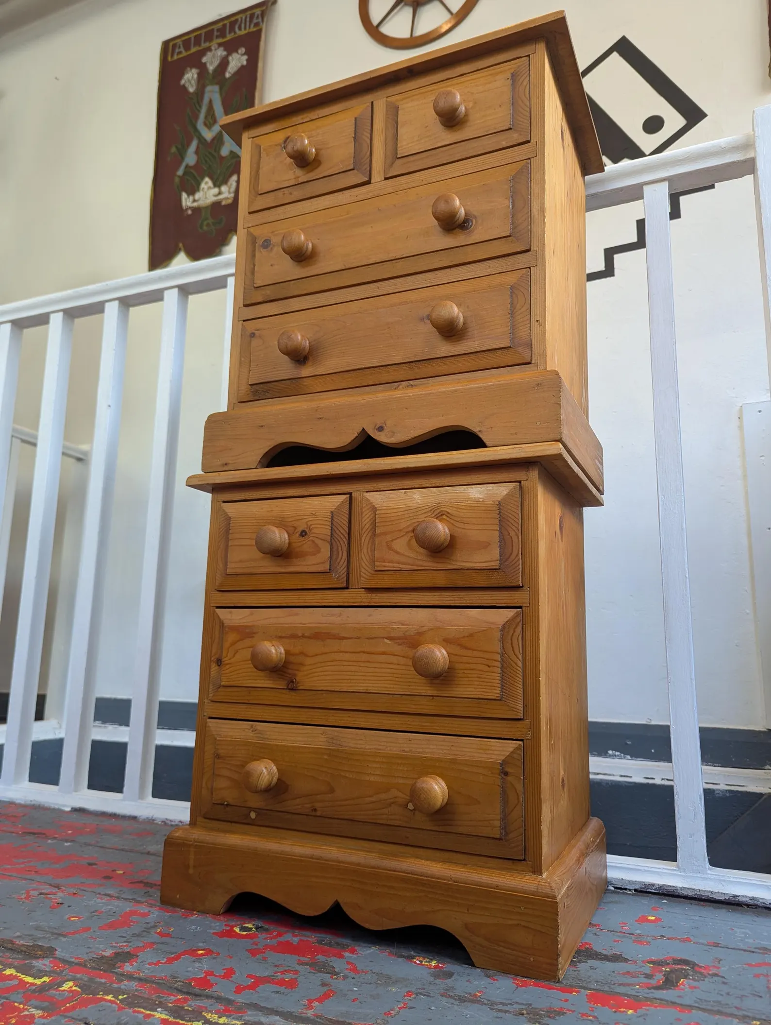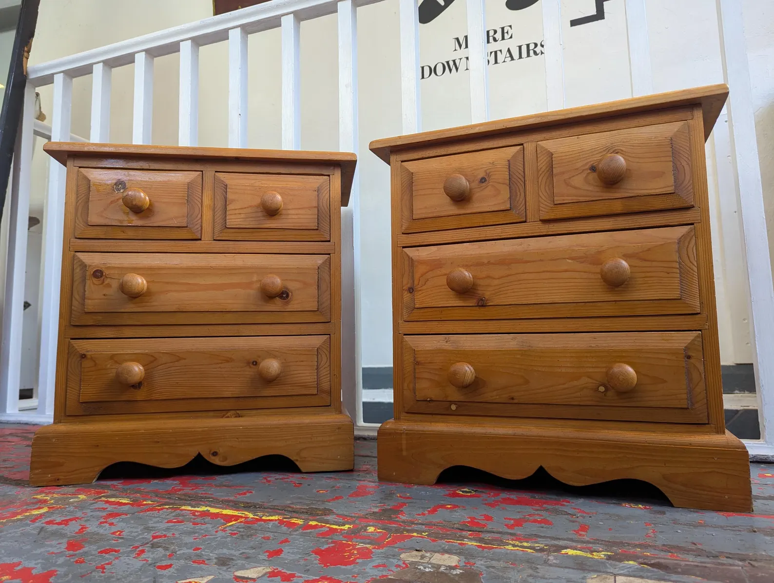 A simple but charming pair of vintage four drawer bedside tables/cabinets ideal as nightstands either side of the bed or as stand alone pieces spread across the home.