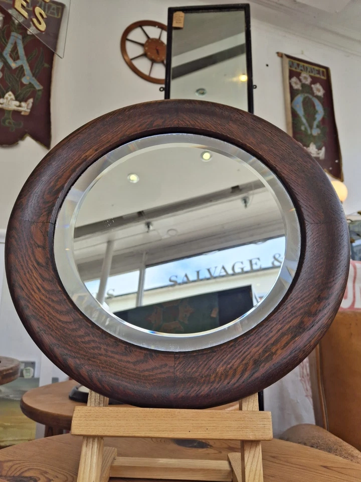 1930’s Oak Framed Bevelled Edge Wall/Vanity Mirror.