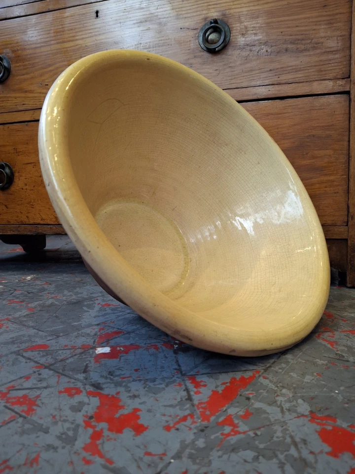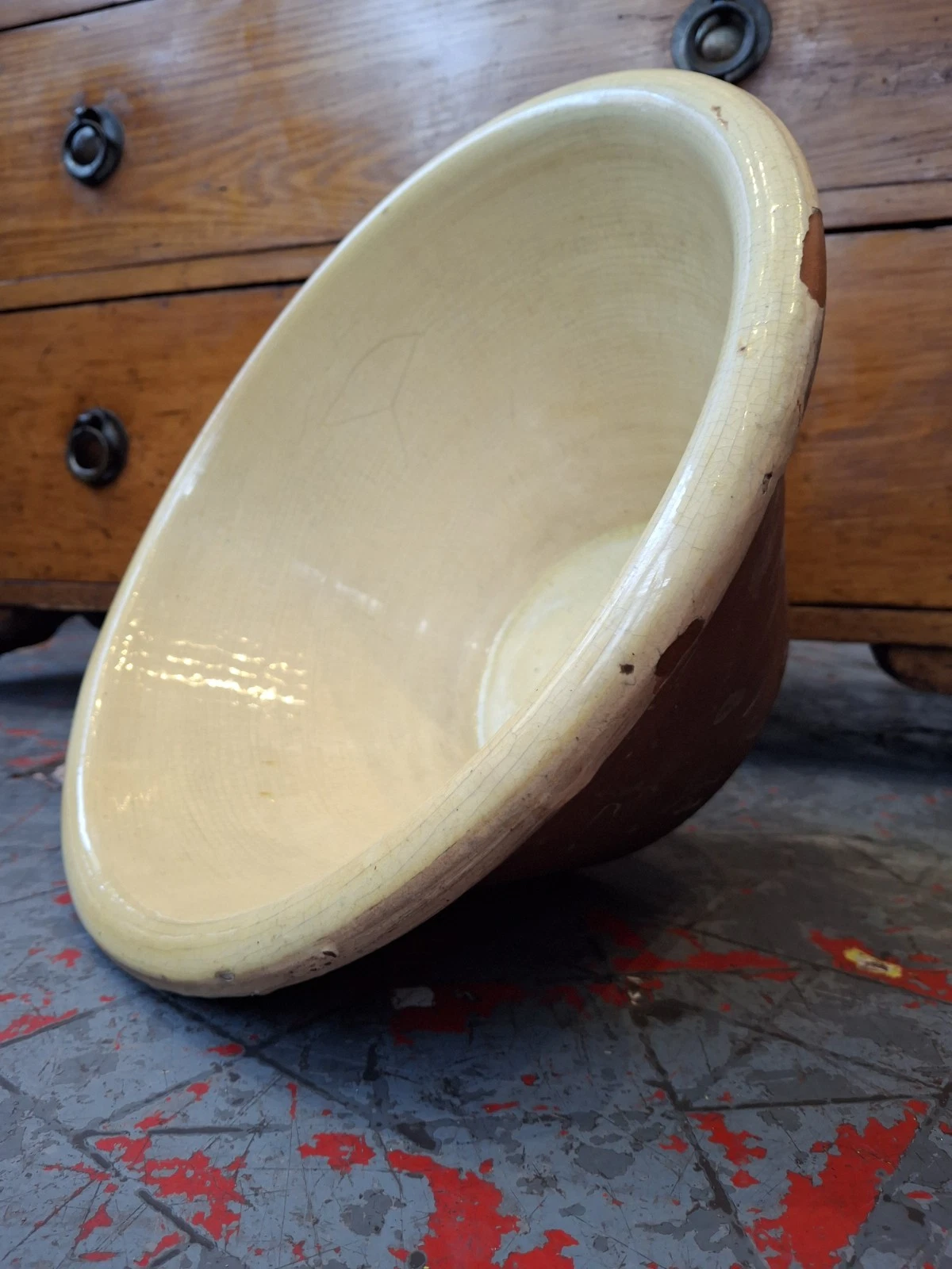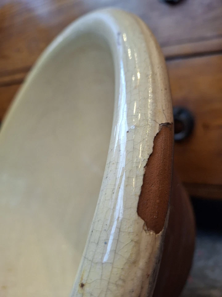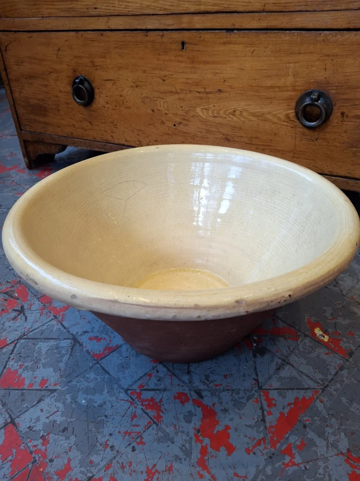 19th Century Glazed Terracotta Welsh Dairy Cream Bowl.