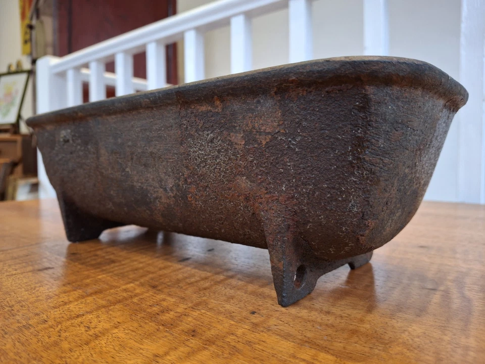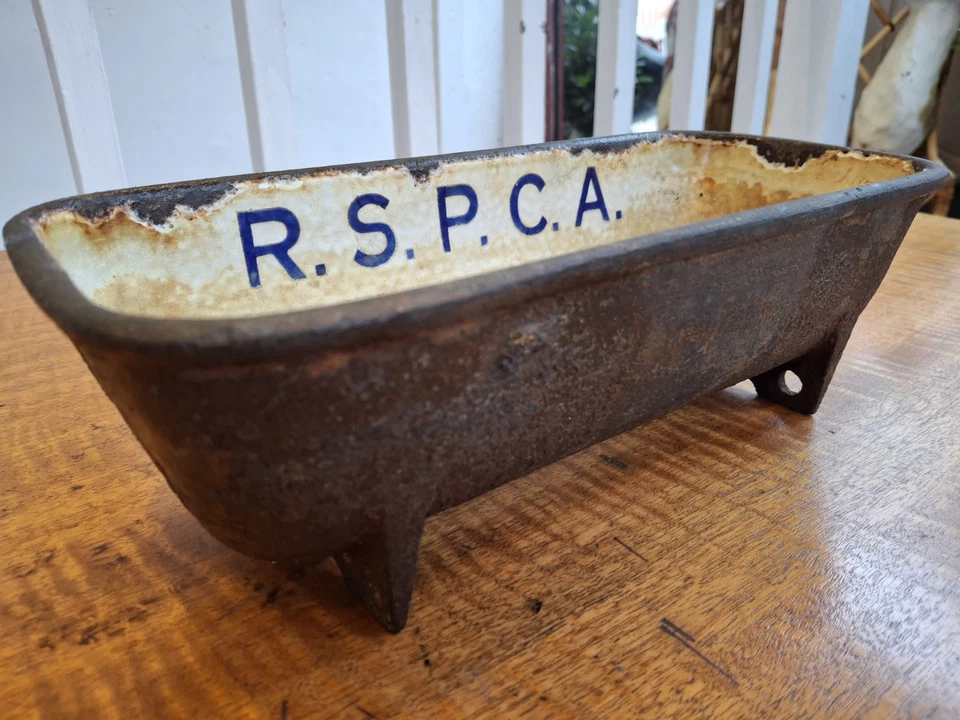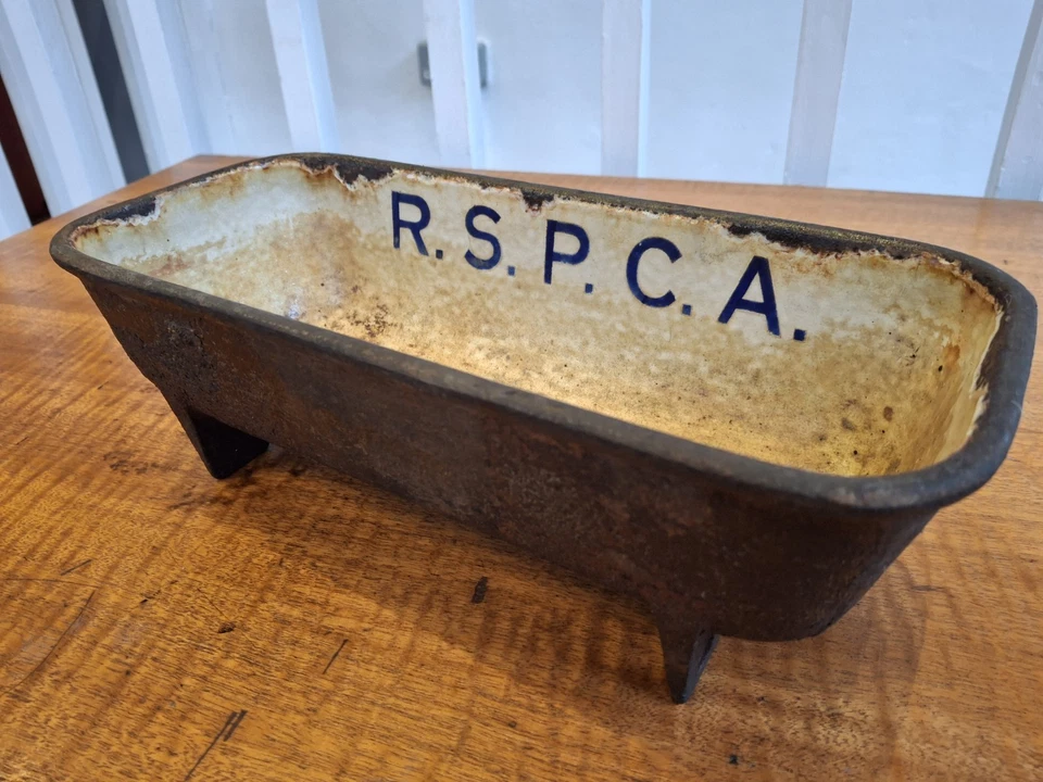 A gorgeous little survivor and as usable as the day it was made this cast iron & enamel RSPCA advertising dog bowl would have sat outside the local pet store or grocers for any passing hounds to sate their thirst!