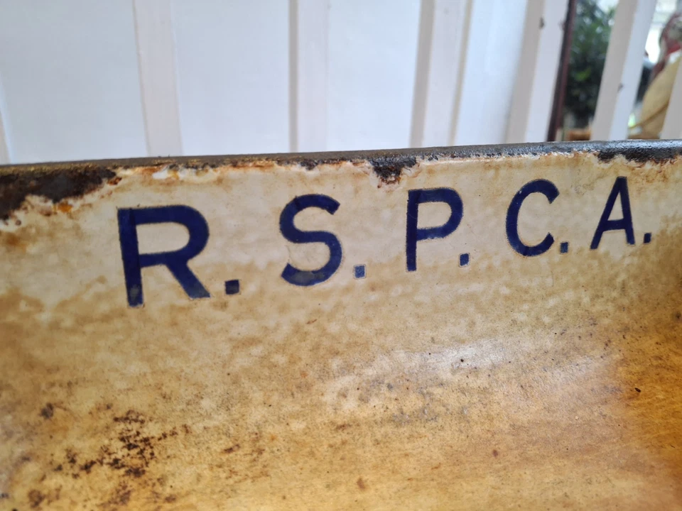 Antique Early 20th Century Cast Iron & Enamel RSPCA Water Trough/Dog Bowl.
