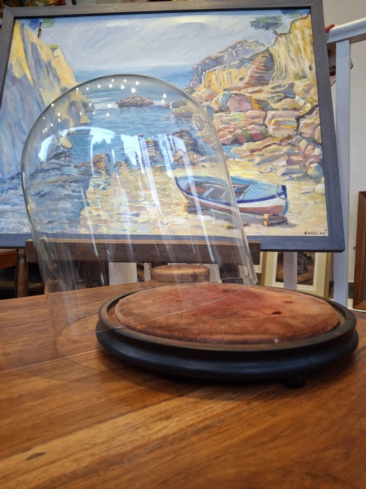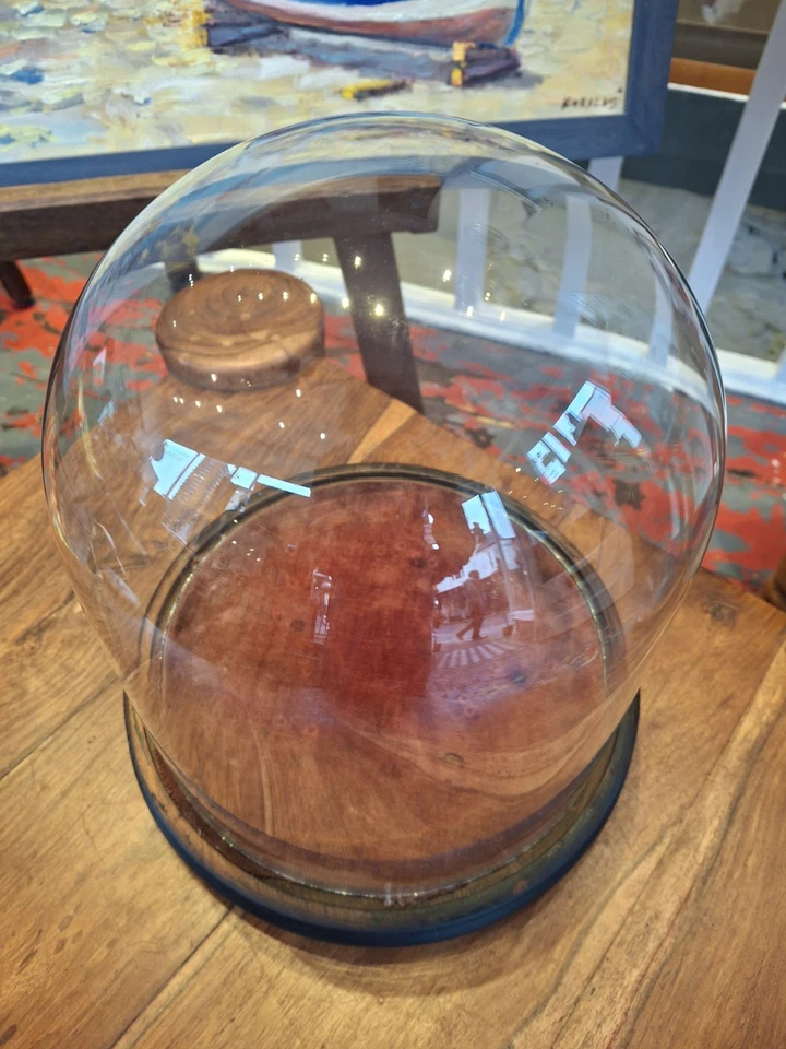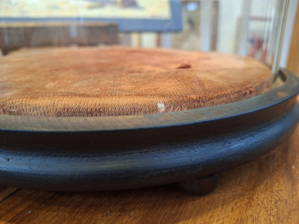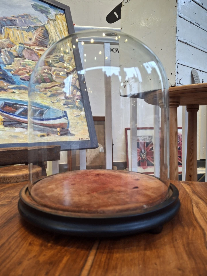 A superb quality original glass dome sits snugly on top, perfect for the display of any suitably sized piece.