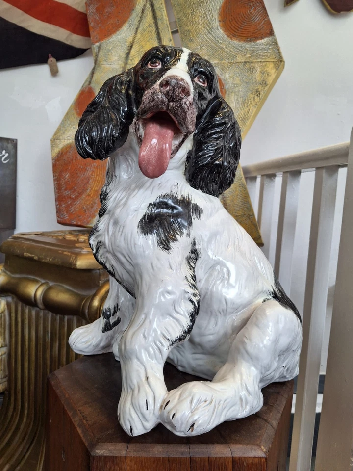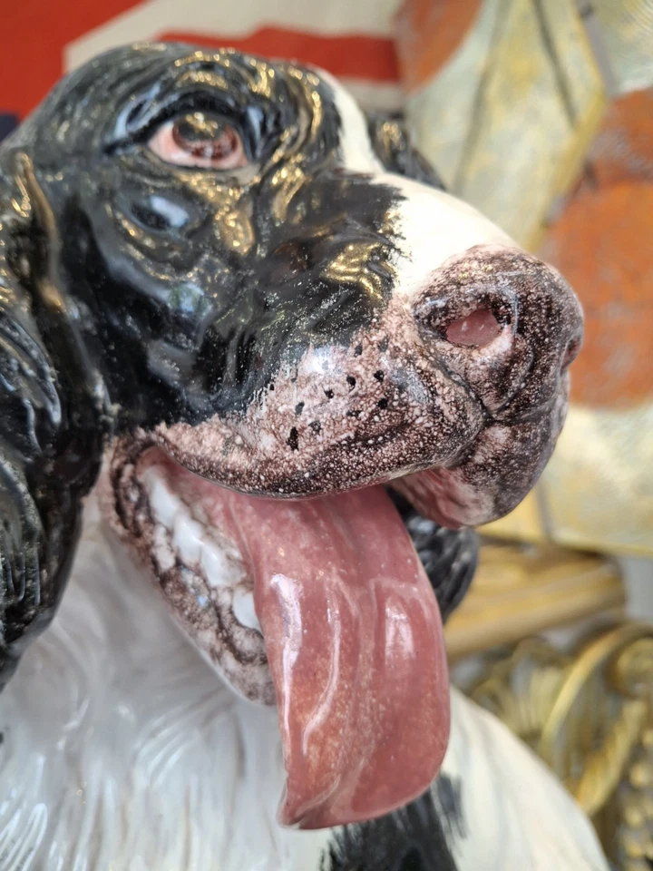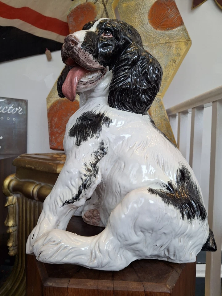 1970’s Italian Hand Painted Ceramic Springer Spaniel Dog Statue