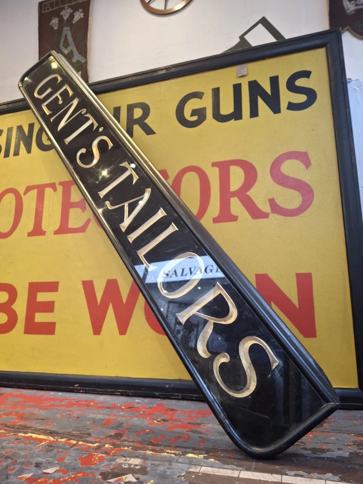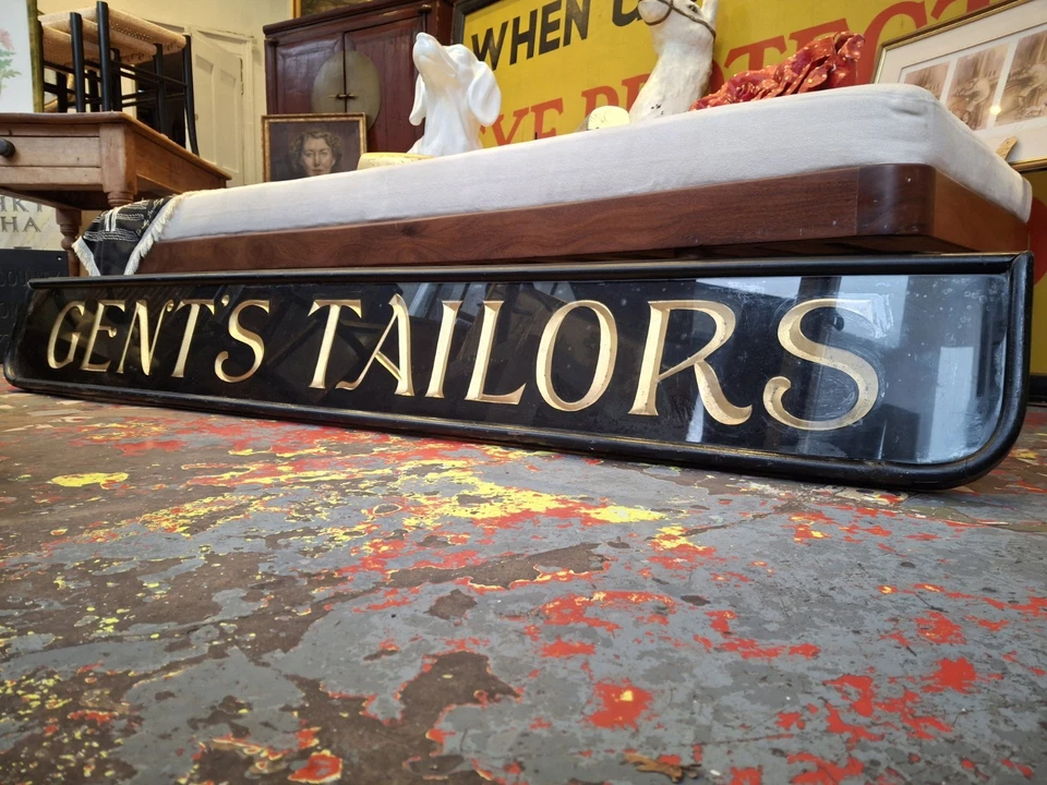 Expertly hand carved & gilded with a reverse painted glass surround this late Victorian gents tailors sign is as good as they come!