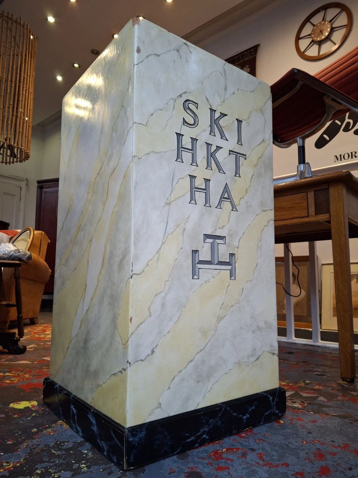 Imposing, stylish & functional, this superb hand painted faux marble masonic plinth or stand would have taken pride of place in one of the many temples across East Sussex & would now serve as a superb home interior display piece or even in a retail or hospitality setting.